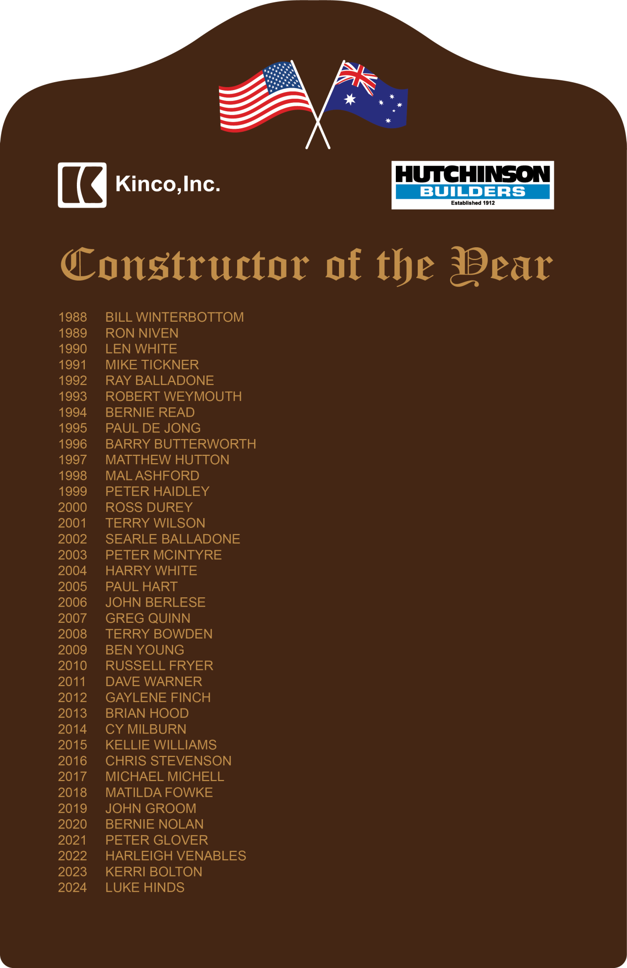 Hutchies has a long tradition of recognising our team's hard work. Since 1988 we've held our annual COTY awards. Winners are announced by Scott Hutchinson at our 'breakup day' right before Christmas.