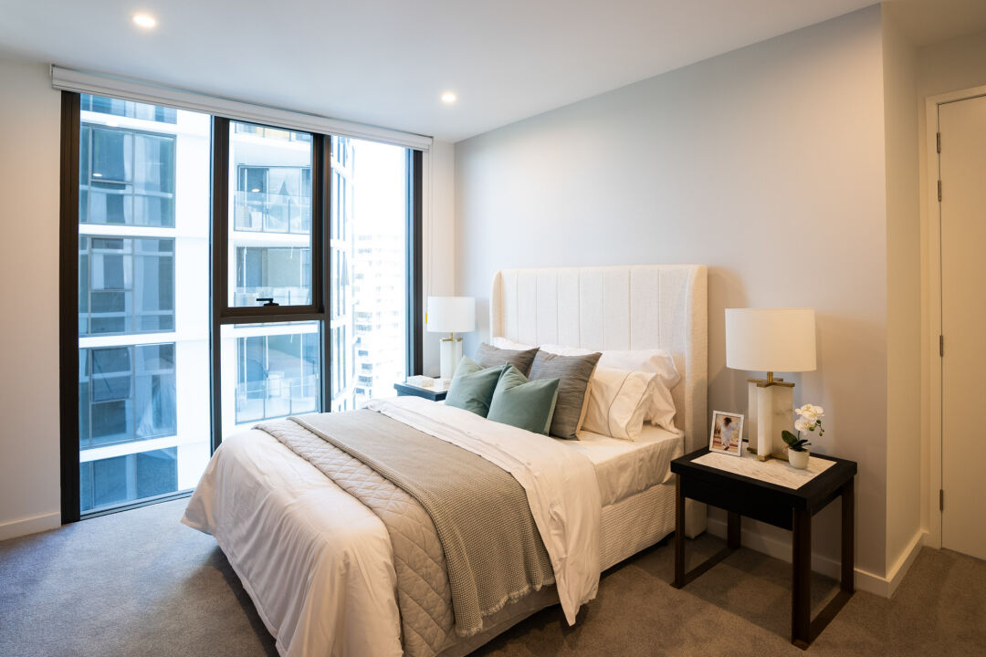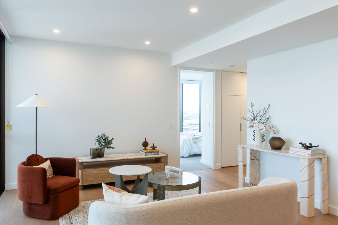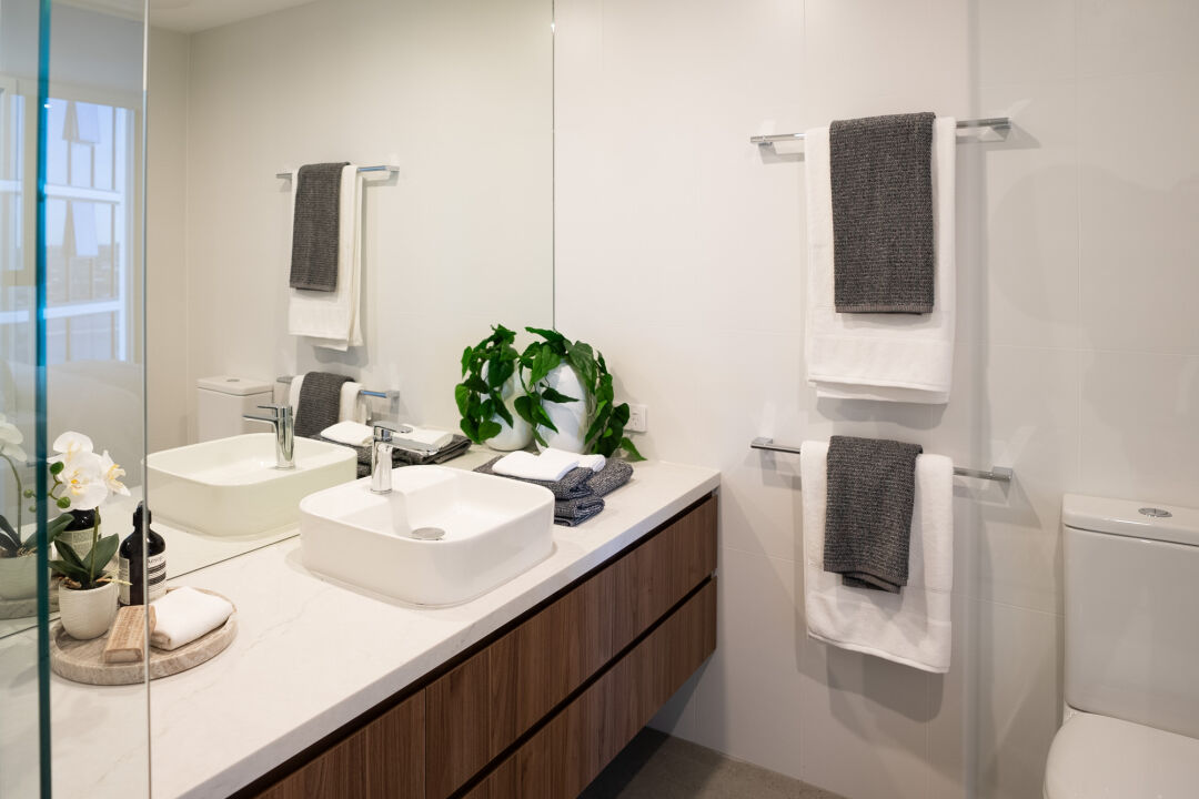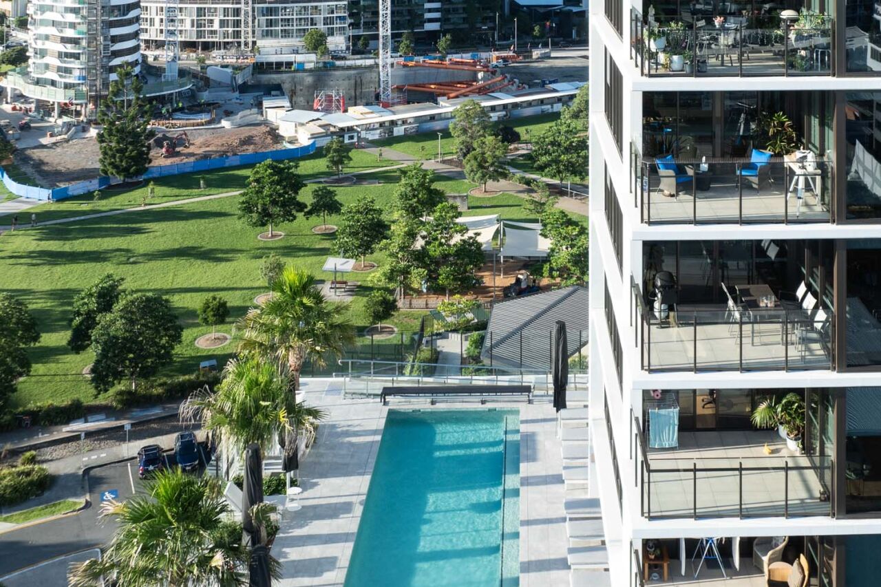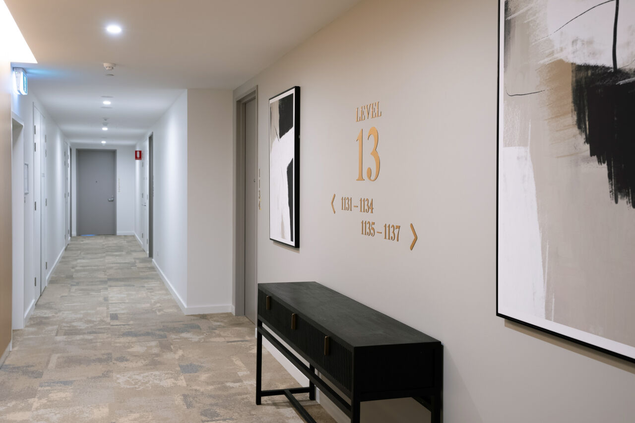 Being delivered as two stages, the project team adopted several safety measures to minimise any impact on residents while they occupied Stage 1 as Stage 2 continued to be built. This included temporary fire systems and special traffic lights in the carpark to create separation from the construction areas and traffic, and residents. Hutchies’ team worked with the client to adopt a range of subtropical design principles that ensured year round usability of