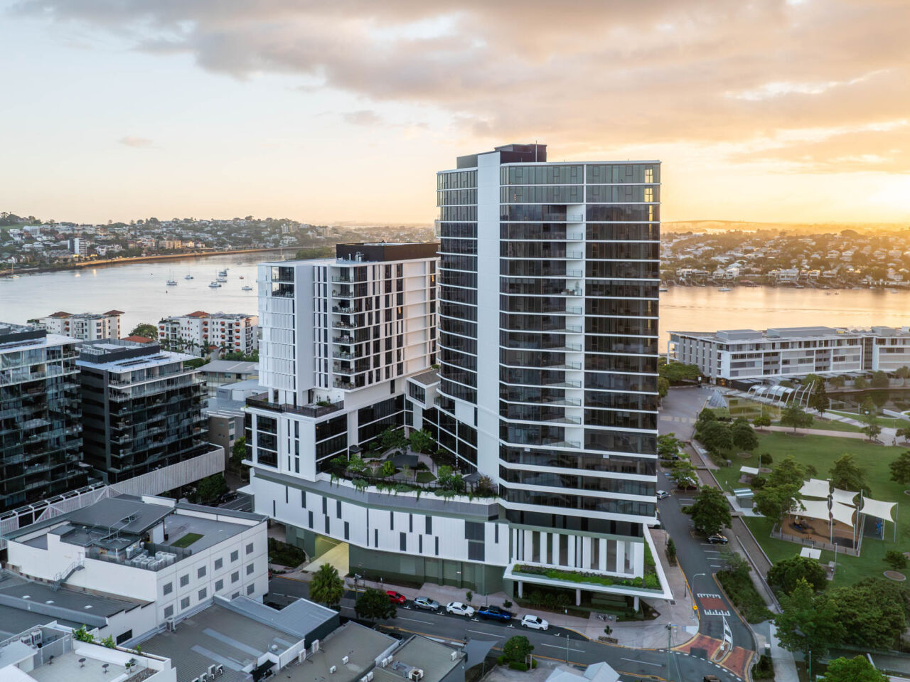The project faced a number of challenges, including COVID-19 labour constraints resulting in 30% productivity impacts, as a result of isolation protocols, remote work and health and safety measures to maintain operations. The site, being in the heart of Newstead and in close proximity to the Brisbane River, was also tested by the 2022 Queensland Floods, which saw triple La Nina conditions put the project’s innovative drainage solutions and protective measures to the test, which stood up to the occasion and prevented any damage to our construction site.
