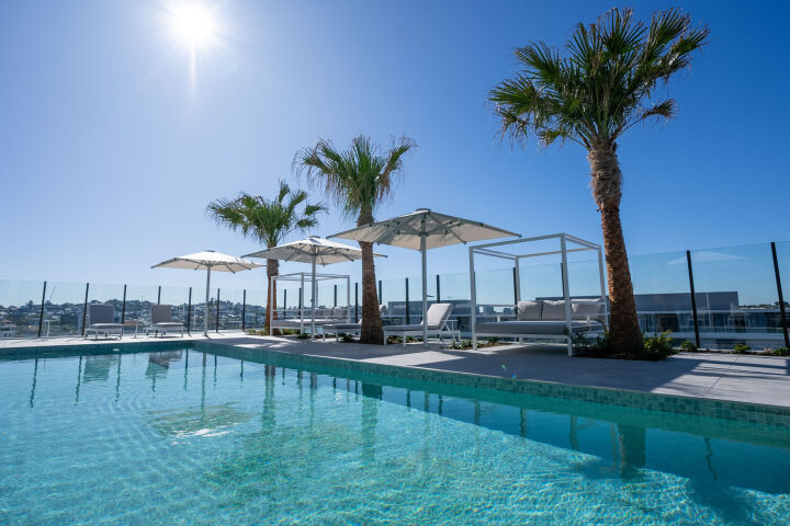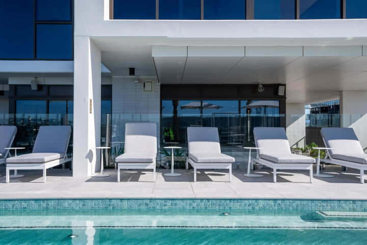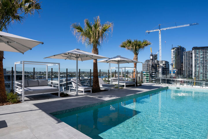 Hutchies delivered a range of innovations through the project, including adopting a VersiScape jacking system for the pool decking instead of traditional timber, with pavers raised 1.4m on a GRC grating. This innovative approach cut down on concrete and reinforcement, lightened the structure’s load, and reduced the overall carbon footprint of the project, while offering low maintenance and better slip resistance with porcelain tiles.