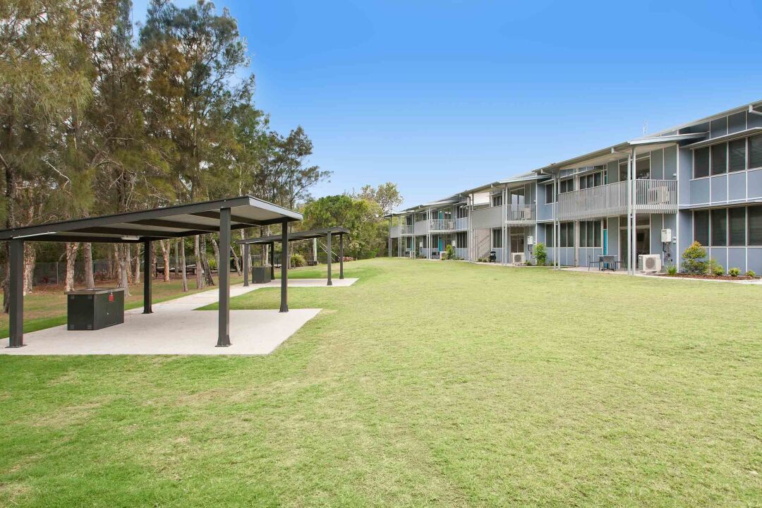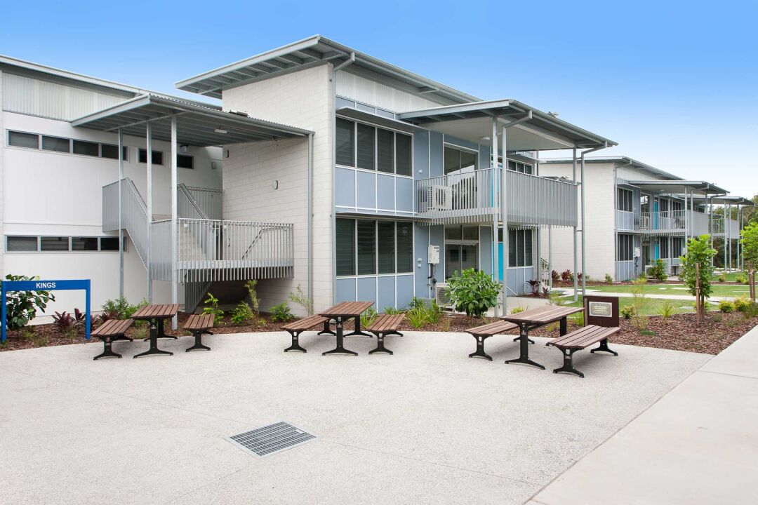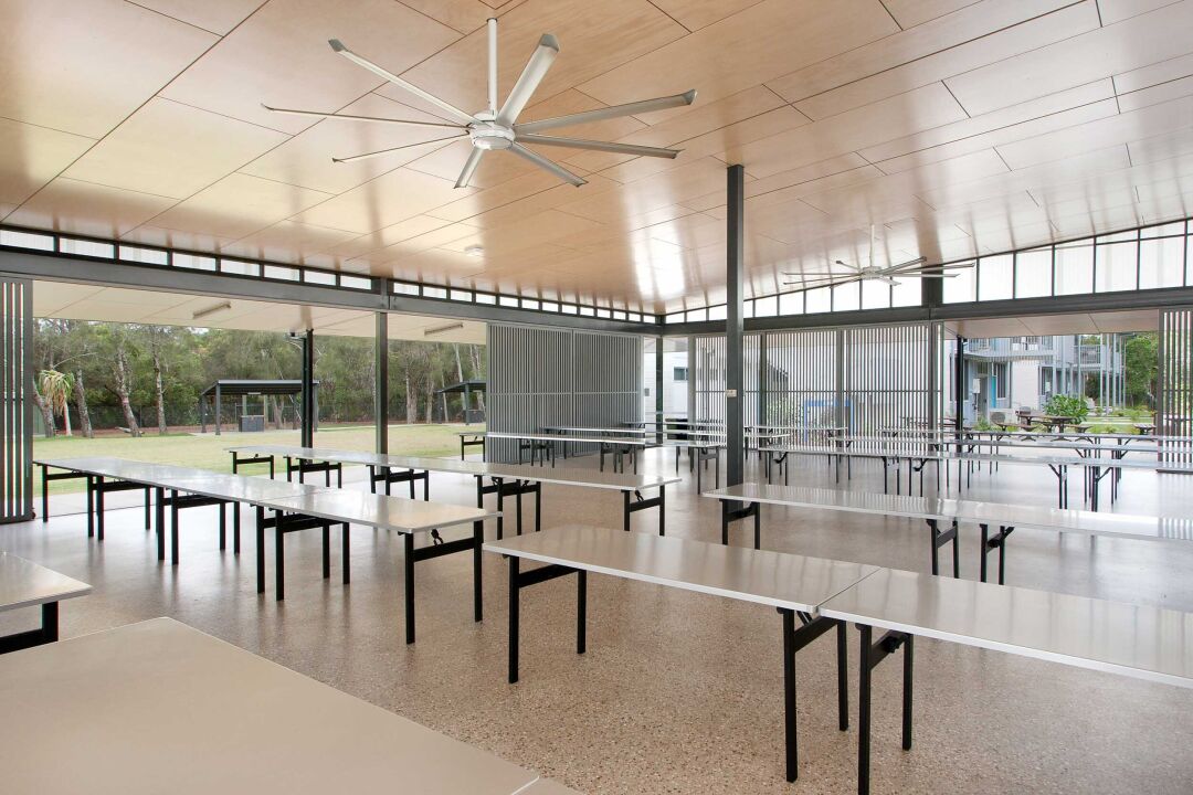 The major facelift of the Currimundi Recreation Centre included the demolition of existing accommodation facilities and the construction of two new accommodation blocks, with one and two bedroom units with ensuited bathroom facilities. The redevelopment included the construction of a new transit centre and a modern alfresco dining hall, plus the refurbishment of the existing dining hall. Features included polished concrete flooring, white birch plywood joinery, exposed concrete soffits, pre-finished plywood ceiling, and honed and polished coloured block work. A pedestrian bridge was also included in the final building works to provide convenient access to the local beach.