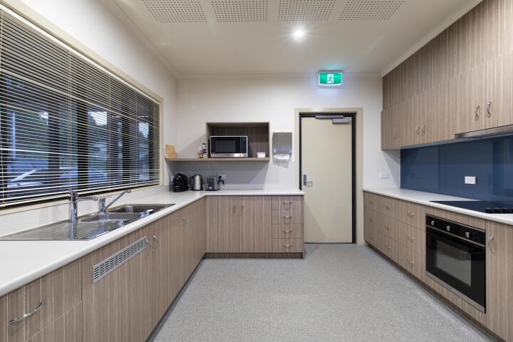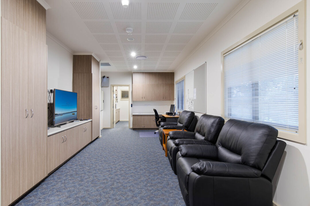 Hutchinson Builders recently completed the design & construct of a new Queensland Ambulance Station with a separate relief quarters in Kenilworth. The station consists of offices, indoor & outdoor recreation areas, amenities and a two ambulance vehicle bay plant room. The relief quarters consists of two bedrooms, lounge, kitchen, amenities, laundry and single carport. As the site borders residential properties and a retirement village, extra care went into limiting noise and light transfer. All decorative finishes were installed and completed above the required standard, including glass splashbacks and decorative gable ends incorporating a laser cut Queensland Ambulance Emblem. Overall, this award-winning design and high standard of finish creates a homely atmosphere for the ambulance staff & First Responders. |