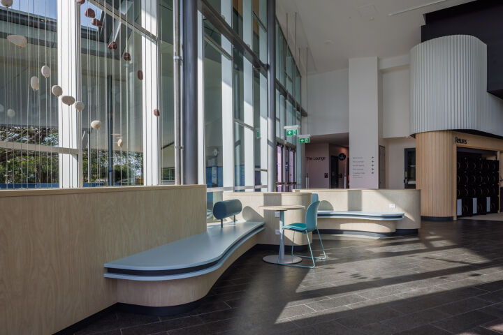 The refurbished library now boasts a café, meeting areas, a creative hub, and an accessible change facility. The design emphasises natural light and offers stunning views of the lagoon and river. A unique curving ‘wave’ design element enhances the library’s aesthetic, blending harmoniously with the river landscape. To achieve this outcome the product specified by the Architect was found to have non-conformance / non-compliance issues and was not fit for purpose to achieve the effect desired. Hutchies proposed Autex as an alternative product which was approved by the Architect and produced a much better finished product meeting compliance requirements.