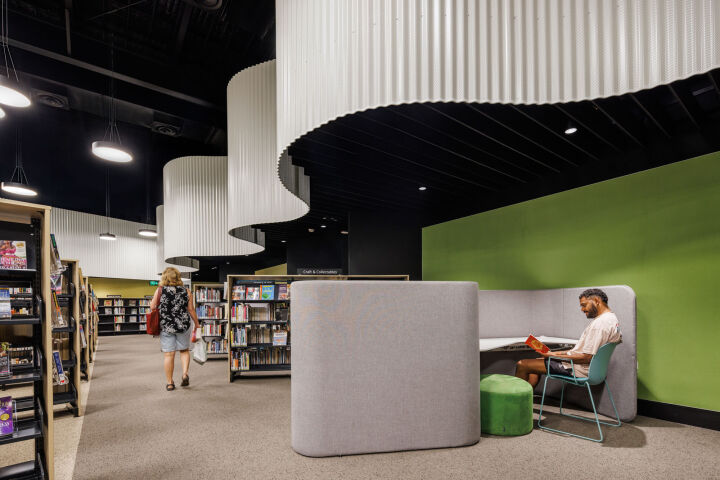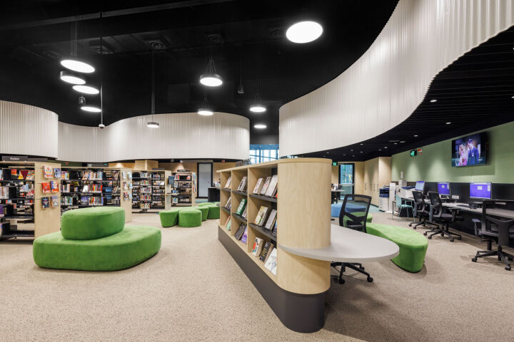 Hutchies delivered the new Riverway Library, which, involved relocating the Thuringowa Library to a new precinct in Townsville. This new location integrates seamlessly with the surrounding lagoon, art gallery, sports facilities, and parklands, transforming the former performance venue into a modern library.