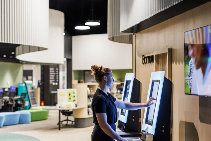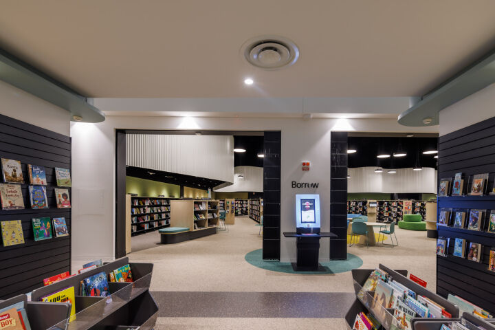 The library features a creative hub for audio and video production, 24-hour meeting and study rooms, a business lounge, and a parenting room. Additionally, 24/7 reservation pick-up lockers outside the café provide convenience for library users.