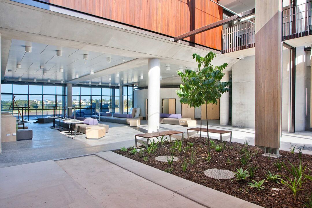 Built on the Sippy Downs campus, the $20.7M Engineering Learning Hub is a state-of-the-art, 5 Star Green Star benchmarked learning and teaching complex. With around 6,500m² of floor space over four levels, the learning and teaching complex features an integrated suite, including world class visualisation theatres for immersive learning at USC and USQ. The technology features the combination of visualisation techniques, and 3D and virtual reality technologies to allow students to see and interact with life-size 3D simulations of objects and spaces. With a range of teaching spaces, including flexible tutorial rooms and studios for large and small group teaching, the building incorporates a 96-place science teaching laboratory and associated preparation facilities. It also includes a modern learning common area for non-timetabled learning and collaboration, dedicated spaces for postgraduate students, an advanced computer laboratory, staff offices and interaction areas, a student administrative centre, and spaces for students, staff and the community to engage and collaborate. The building was awarded the 2015 QMBA Sunshine Coast Project of the Year Award and the 2015 QMBA Sunshine Coast Commercial Building over $5M Award.