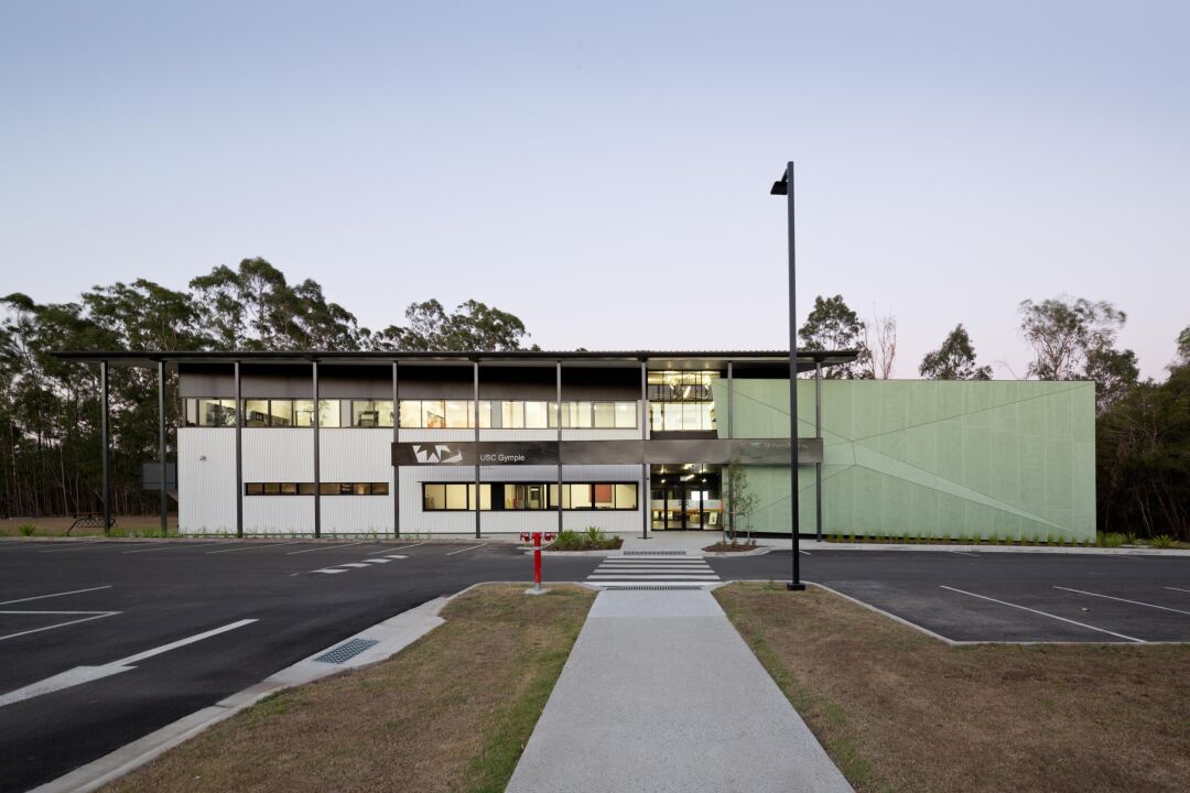 Built to provide a dedicated USC facility in Gympie, the Gympie Learning Hub includes a 75 seat lecture theatre, a skills development laboratory, tutorial rooms, study areas for students, staff offices, and interactive learning technology to connect with USC's Sippy Downs campus. The facility is spread over two floors, providing a total of 1,750m² of floor space
