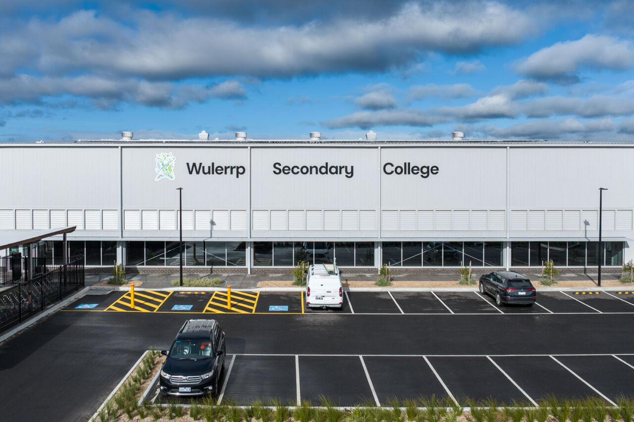 The school includes a double-storey specialist building, a community hub with two basketball courts, contemporary learning and administration buildings, and extensive landscaping across the site. The school’s name, Wulerrp, is the traditional Bunurong word for Teatree, reflecting its connection to Country and commitment to embedding cultural identity and respect into the learning environment.