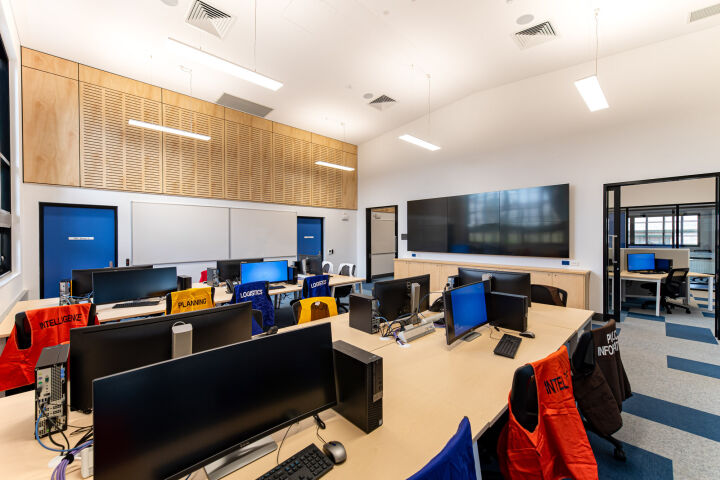 It includes a state-of-the-art disaster coordination room, call centre, radio room, conference room, SES day room and emergency services and council executive offices. Personal lockers with showers, kitchen facilities and dining areas are also included. Along with specialist training areas and meeting rooms also incorporated are comms room, storeroom, plant room and emergency generator room.