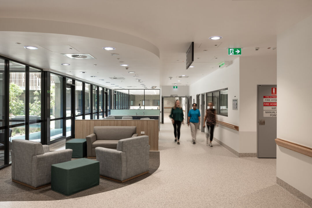 The new three-storey, 44-bed centre includes 24 medium secure forensic beds and 20 low secure beds, expanding capacity to meet regional demand. The facility is designed to support recovery-focused care, encouraging independence and participation in therapeutic activities. It integrates seamlessly with general health services at Blacktown Hospital and features wellness architecture and landscape design that promote healing and connection to nature.