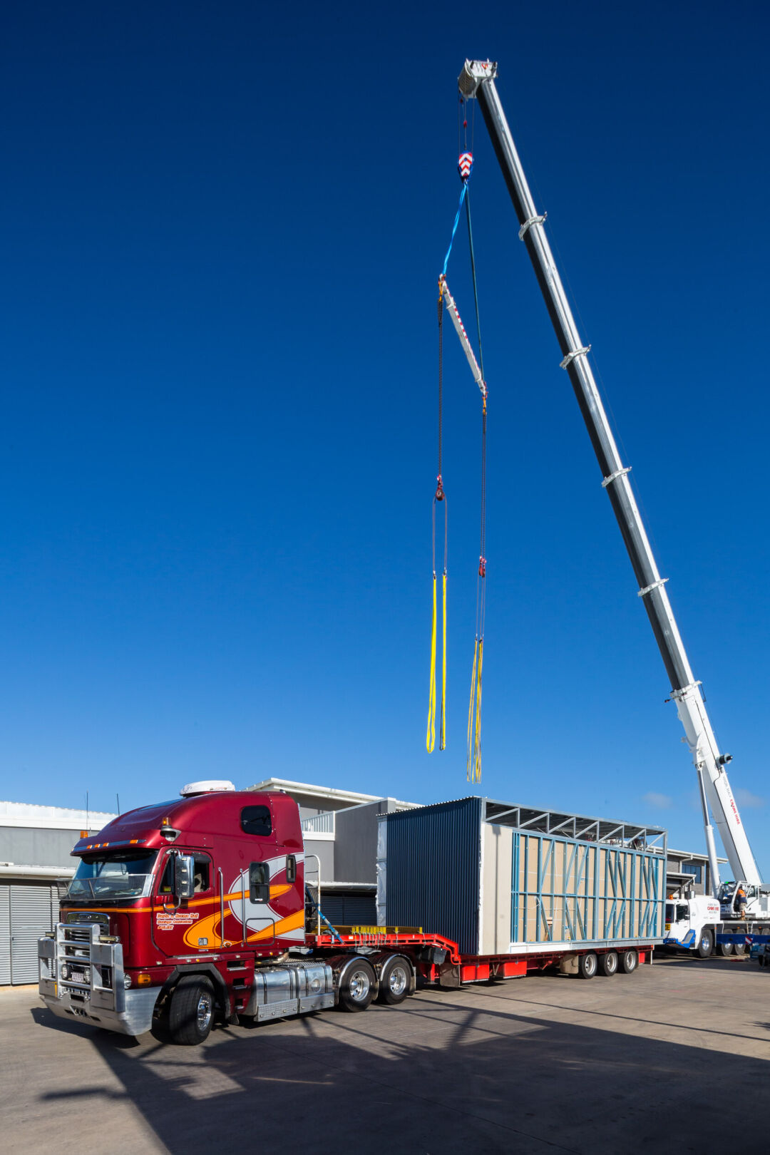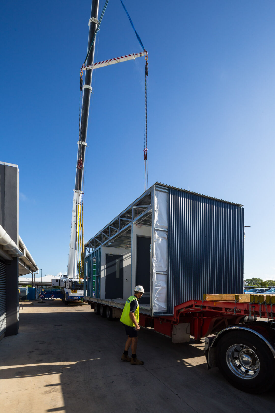 Once the 31 modules were constructed in our modular facility in Yatala, they were transport to Bundaberg and Hervey Bay via a convoy of semi-trailers. The Bundaberg centre is the larger of the two, incorporating 22 modules, which were installed in a single day.