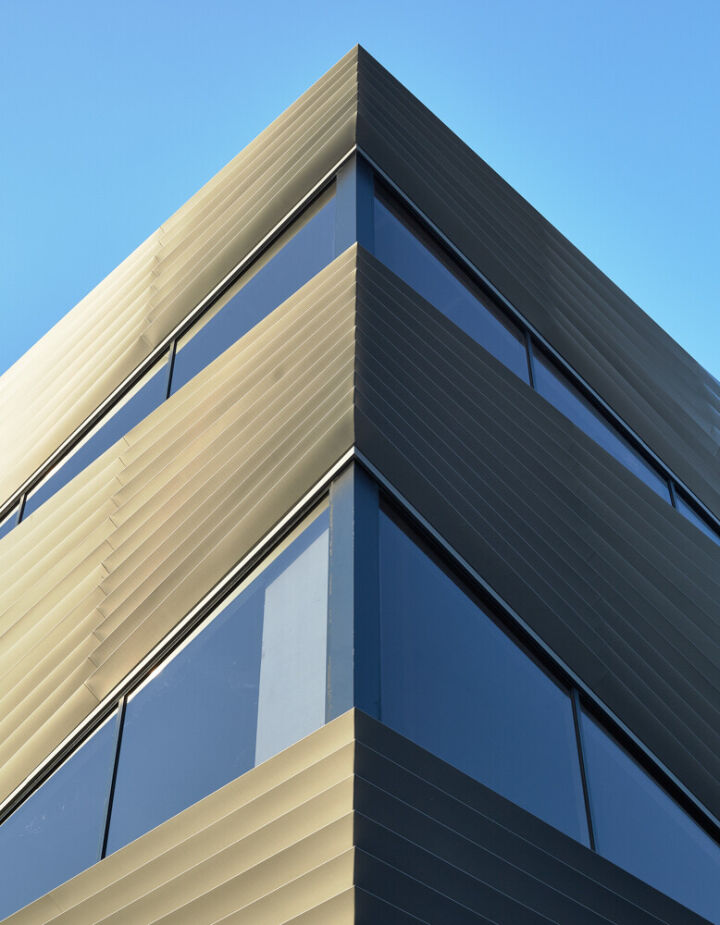 The Lang Parade façade is clad in striking hand folded zinc. Each section was carefully installed in six-metre lengths, 300mm wide, and was individually measured, scribed and installed one at a time, creating a stunning metallic texture along the building. The building was constructed ‘bottom-up' however, given the nature of zinc cladding, and the joints/folds, it was necessary to install ‘top-down', therefore Hutchies used clever programming to avoid delays.