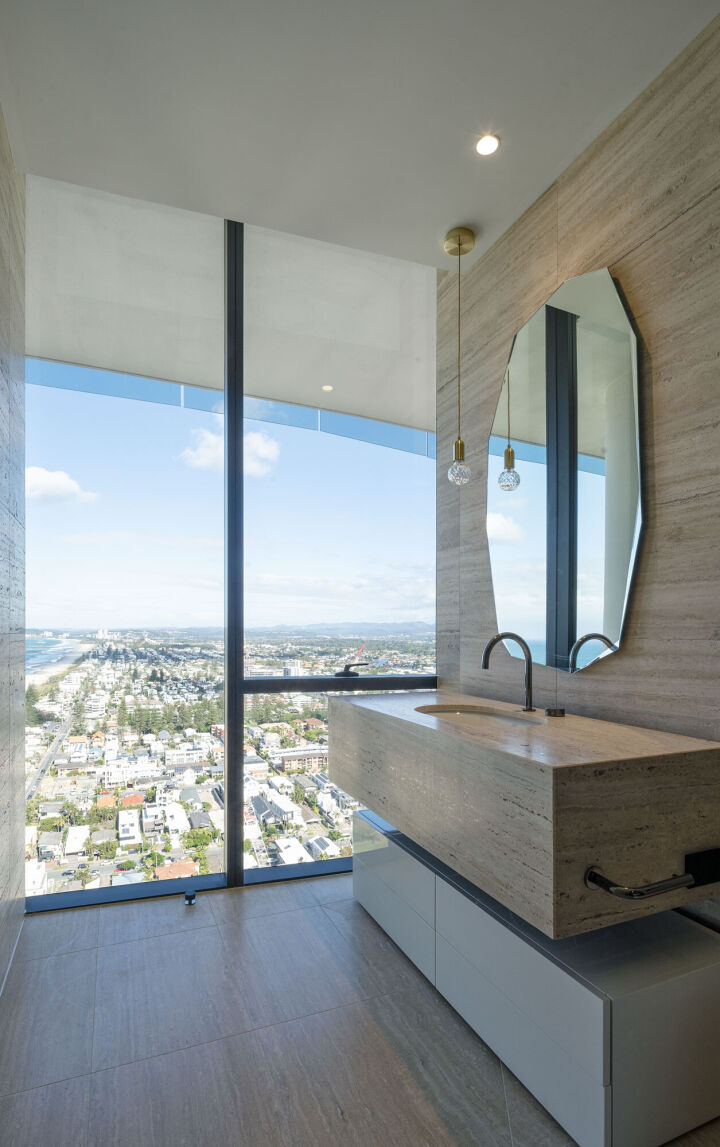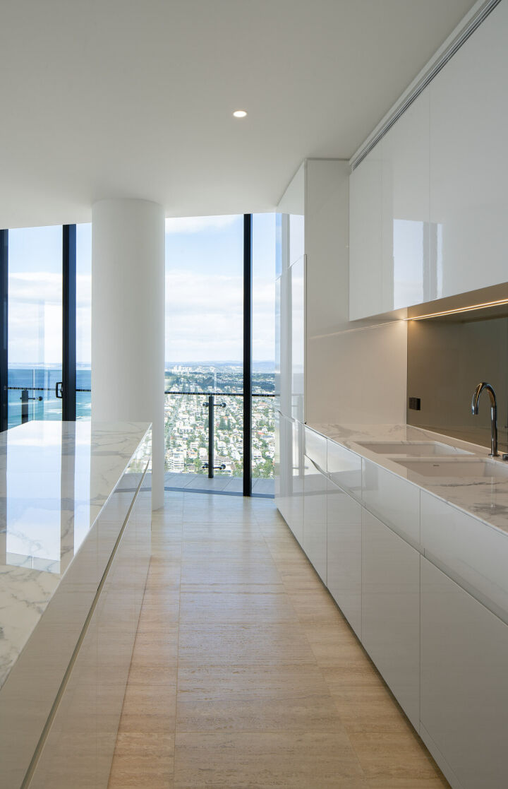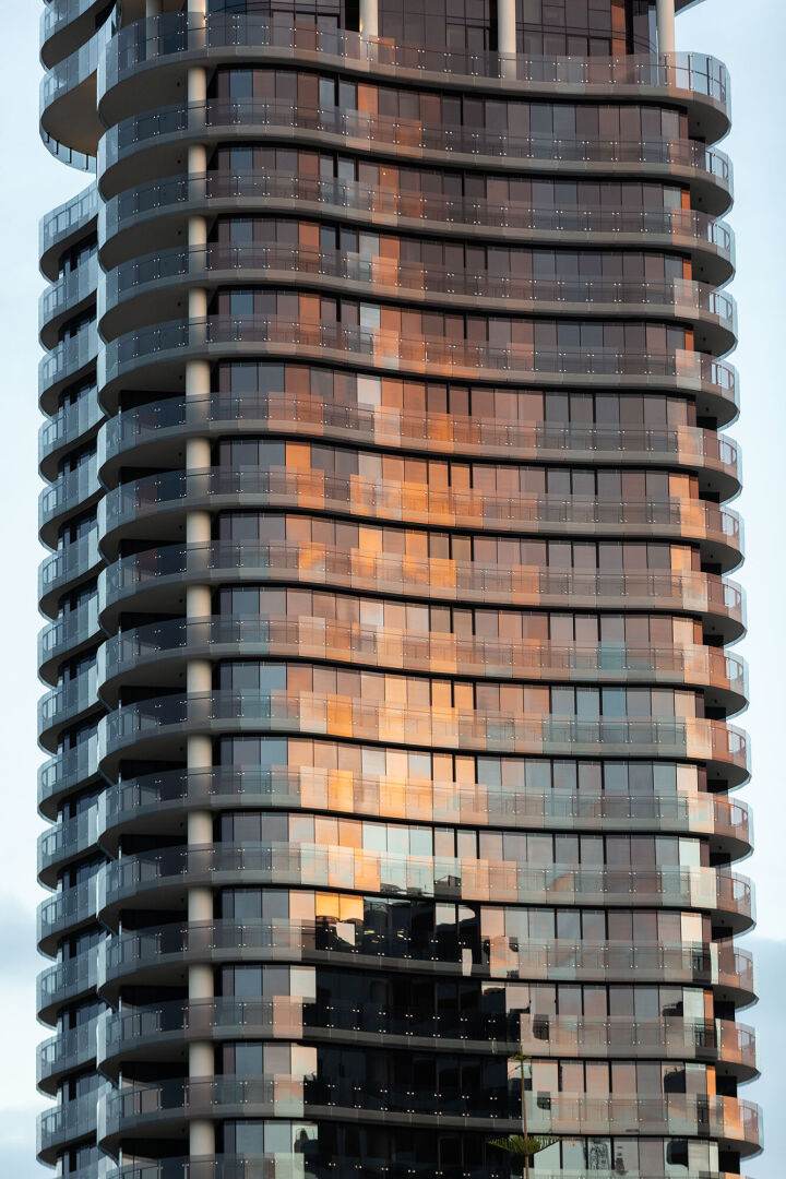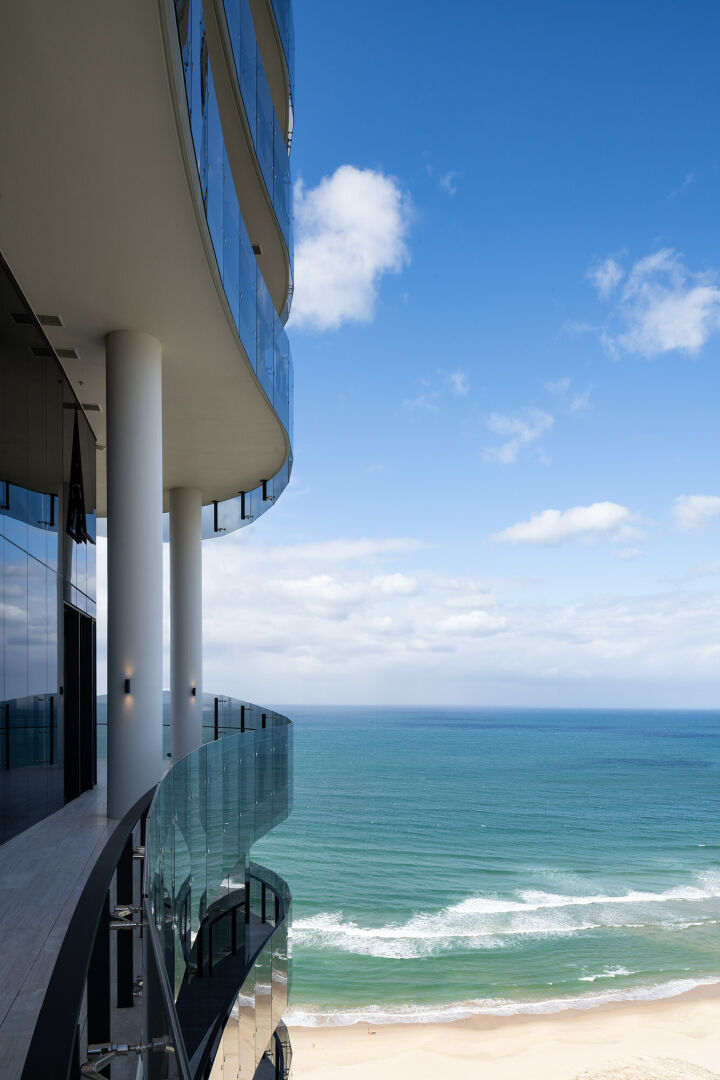 With 44 storeys rising above spectacular Gold Coast beaches, this commanding development includes 98 two, three and four-bedroom apartments, sky homes and penthouses, plus two double-storey sky villas, all with the highest quality fittings and finishes. Exceptional resident facilities include a dedicated concierge service, residents lounge, boardroom, function room, swimming pool, spa, gym, sauna, hammam steam room, and treatment rooms. The tower also features a sweeping canopy at the base of the building, as a tribute to its oceanic setting.