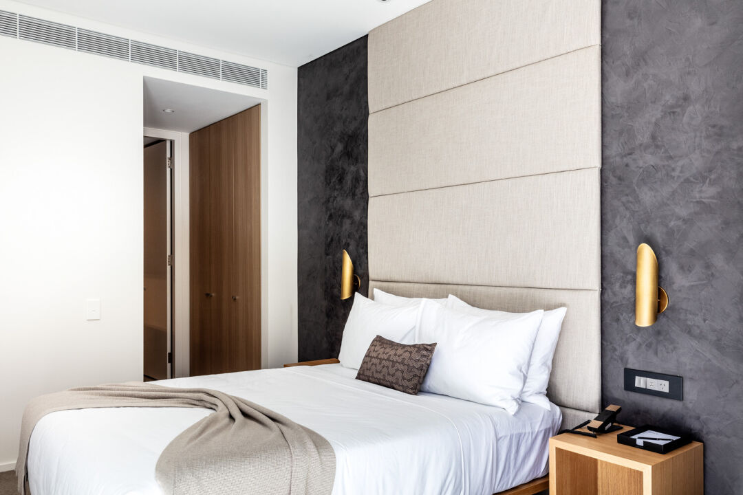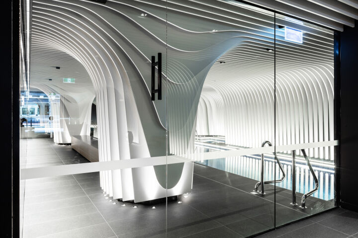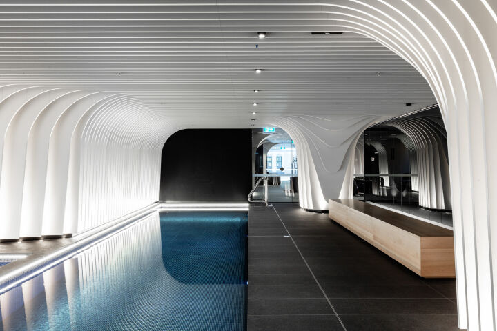 BroadsheetThe centrepiece of the development is the hotel, which has elegant, oversized luxury rooms with balconies, and one of the city’s best-looking pools. It’s in a moodily lit room with a sensually curved ceiling – is there a better place in Sydney to to do laps? – with a gym off to the side.