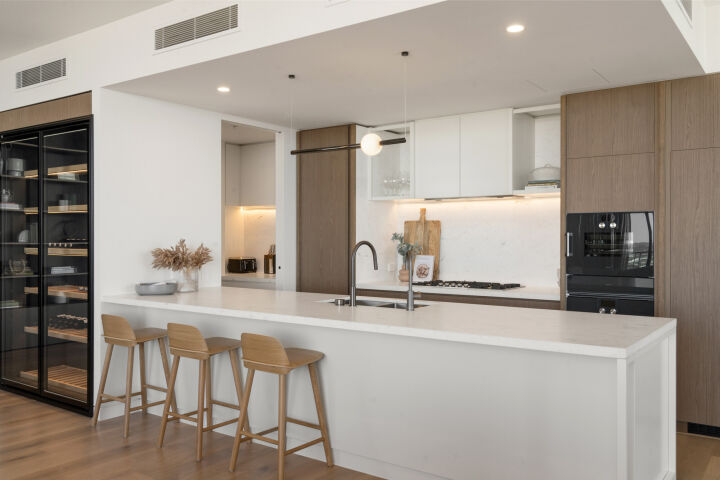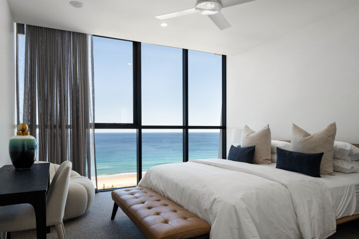 The resident’s amenities include a large resort pool, spa, steam and sauna rooms, gym, yoga space, bike storage, recreation deck, executive lounge and concierge services. Level 25 provides residents with an exclusive club comprising a wine cellar, private dining rooms, kitchen, beautifully appointed library, lounge and media room. Above, a deluxe top floor offers impressive 360-degree views of the Gold Coast.