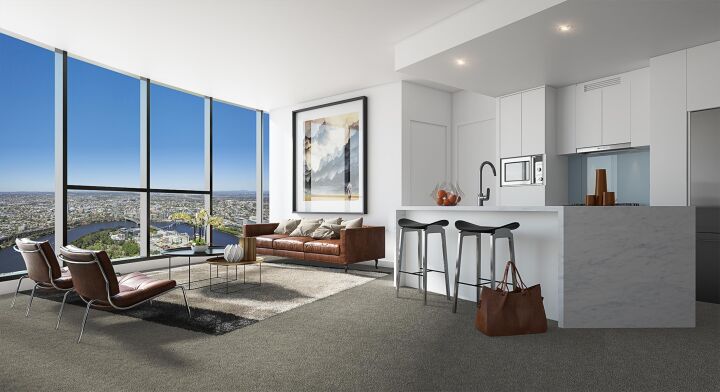 CarleneDuffy,DomainI love the curves on this building, which is now Brisbane’s tallest residential building and through the full-height, double-glazed windows are impressive unobstructed views over Brisbane city.