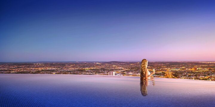 Skytower has been designed with three separate areas of living: Uptown and Downtown, Skyrise, Skycity, and Penthouses, each with its own independent lifts, lobbies and recreational deck including gyms, pools, BBQ areas and steam rooms. The residents of Skycity and the penthouses have the luxury of exclusive access to the southern hemisphere’s highest infinity edge pool, located on the rooftop. The apartments offer an unforgettable living experience, taking full advantage of the tower’s awe-inspiring height and stunning views through walls of glass. The fitout and building services include cutting edge end user technology including the installation of high speed NBN, and advanced integrated services. Each of the three living areas are self-sufficient for power, water, waste and sewerage services.