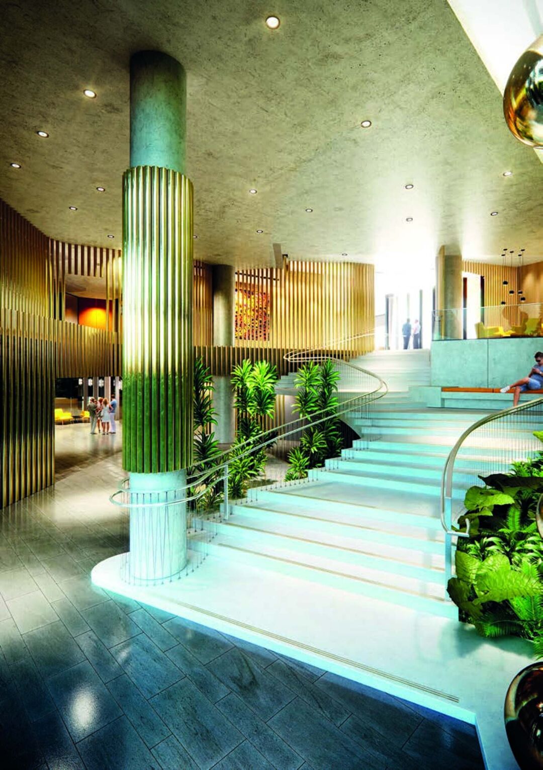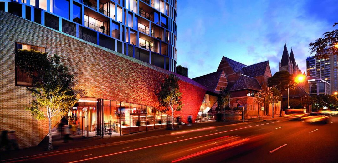 Spire also includes a podium level, designed to embrace the surrounding heritage by incorporating folded brickwork to unite the heritage values of the neighbouring Saint John’s Cathedral and ensure the view of the steeple remains uninterrupted.