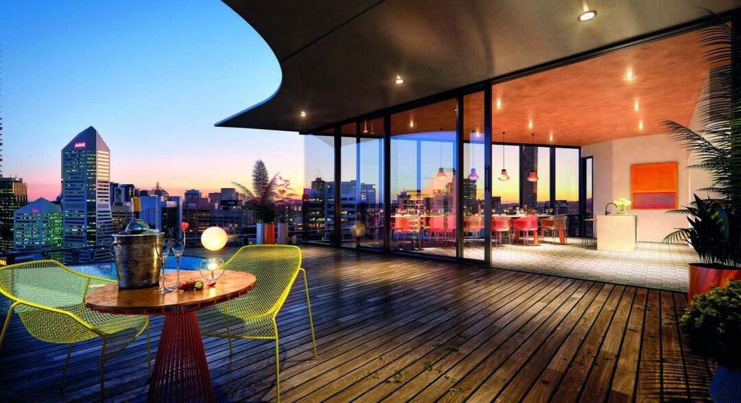 Rising above its Queen St entrance, a stunning vertical garden wall stitches lush greenery into the fabric of the building. With 360 degree views over Brisbane City, Spire’s rooftop leisure deck offers exclusive use of Spire’s beautiful infinity pool, state of the art gym, sun lounges, outdoor alfresco barbecues and private dining areas designed by award winning Urbane restaurant.