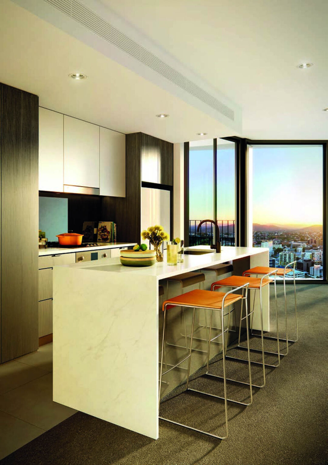 The building’s design, crafted by John Wardle Architects, features a veil-like facade around the tower acting as both a privacy and sun shield, which expands around balconies and living areas to open up views, and contracts around bedrooms for privacy.