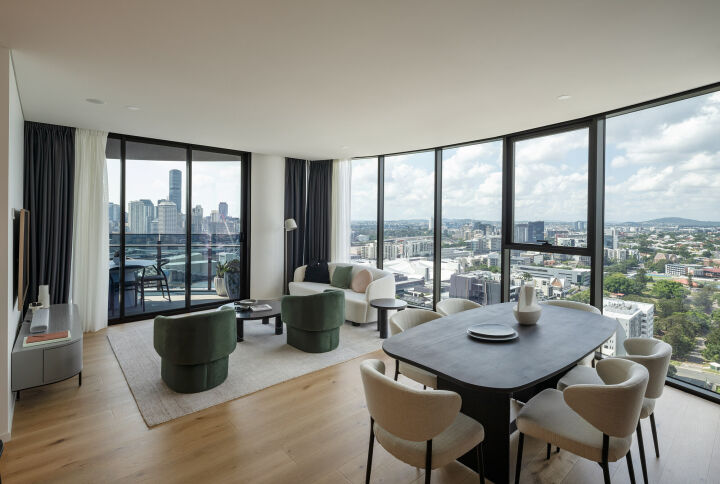 The Standard, located in the heart of the Fish Lane arts precinct has redefined vertical living in Brisbane. Designed by architecture firm Woods Bagot, the cylindrical shape presents the structure as a sculptural landmark soaring to 30 levels above South Brisbane.