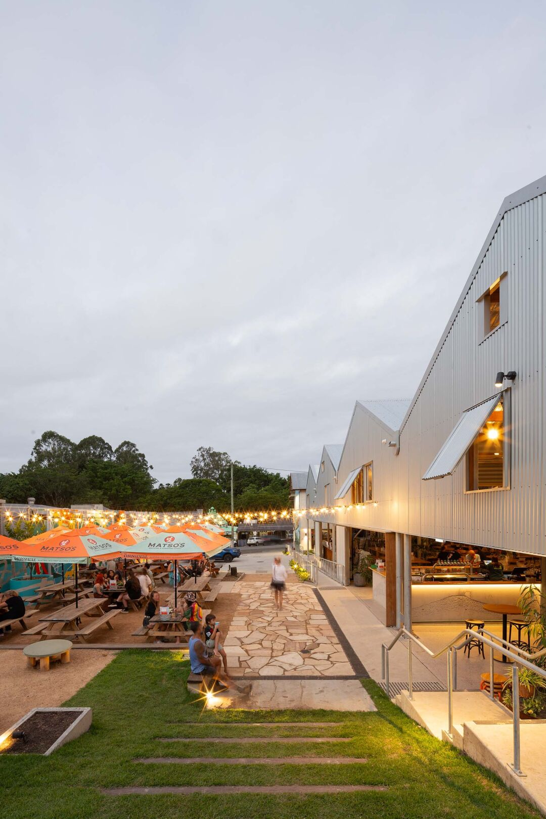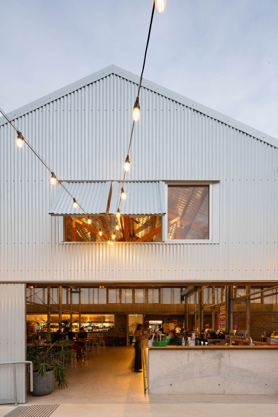 The design consists of four gable roof pavilions that support the seamless transition between heritage and new. The brewery’s steel structure was matched with bolted hardwood trusses that were fabricated in Hutchies’ Sunshine Coast office carpark to accelerate the onsite program.