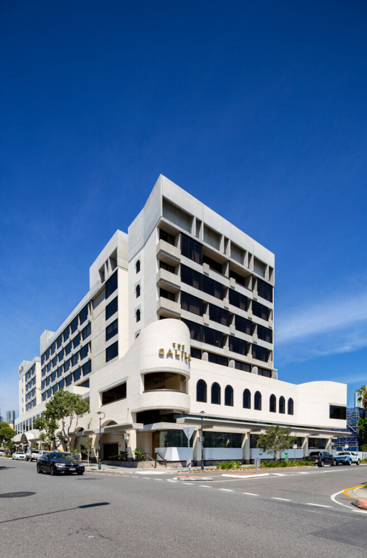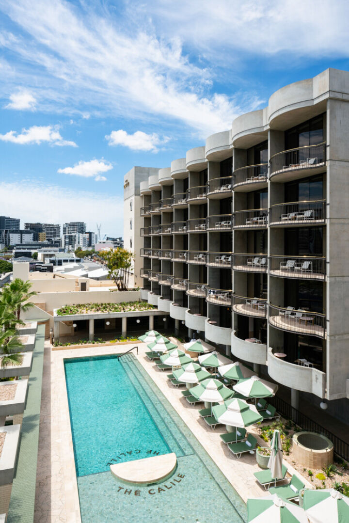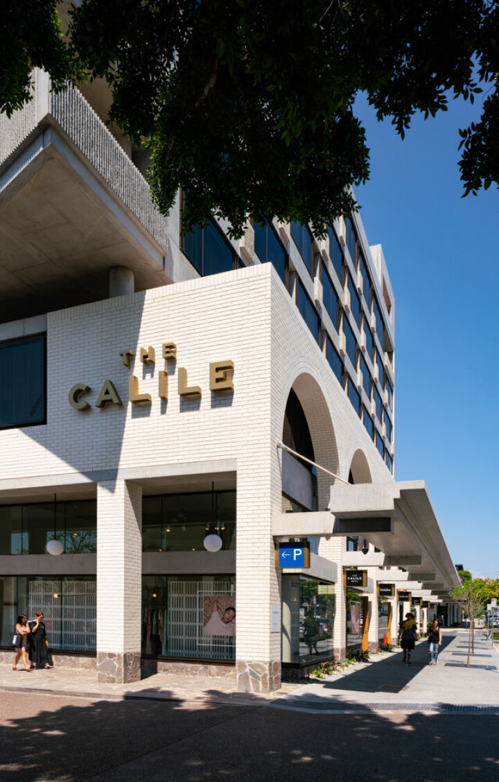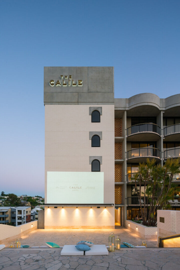 Designed by architects Richards and Spence, The Calile combines seven storeys of luxury hotel rooms and suites, with over 2,600m2 of retail and hospitality space. The hotel features curved ceilings and arches, a unique blend of contemporary materials, various mezzanine levels with suspended floors, and delivers an oasis resort feel in a city-fringe location, setting a new standard in design.