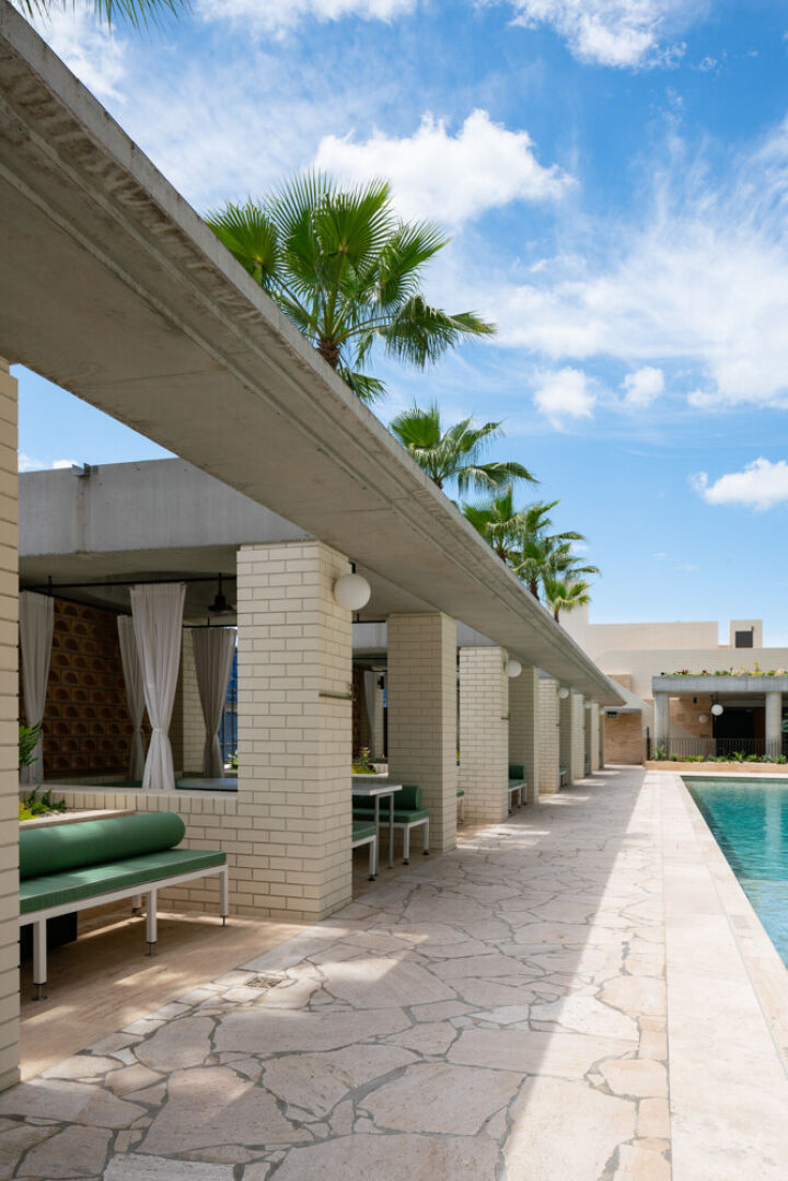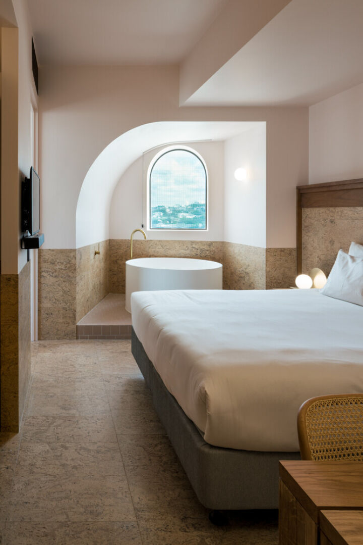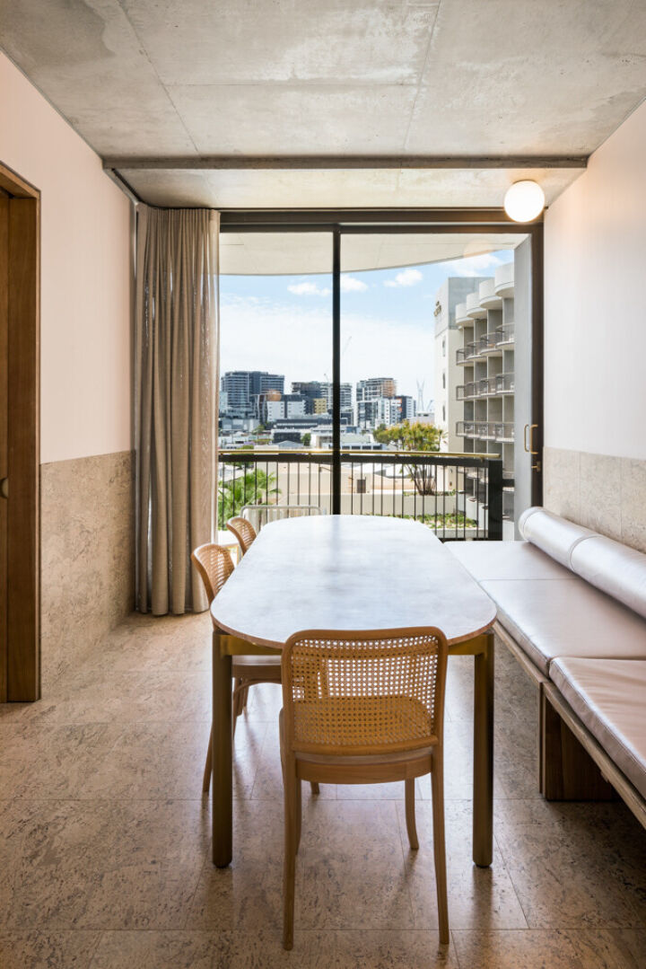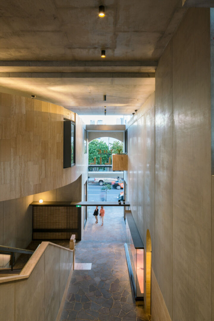 Designed by architects Richards and Spence, The Calile combines seven storeys of luxury hotel rooms and suites, with over 2,600m2 of retail and hospitality space. The hotel features curved ceilings and arches, a unique blend of contemporary materials, various mezzanine levels with suspended floors, and delivers an oasis resort feel in a city-fringe location, setting a new standard in design.