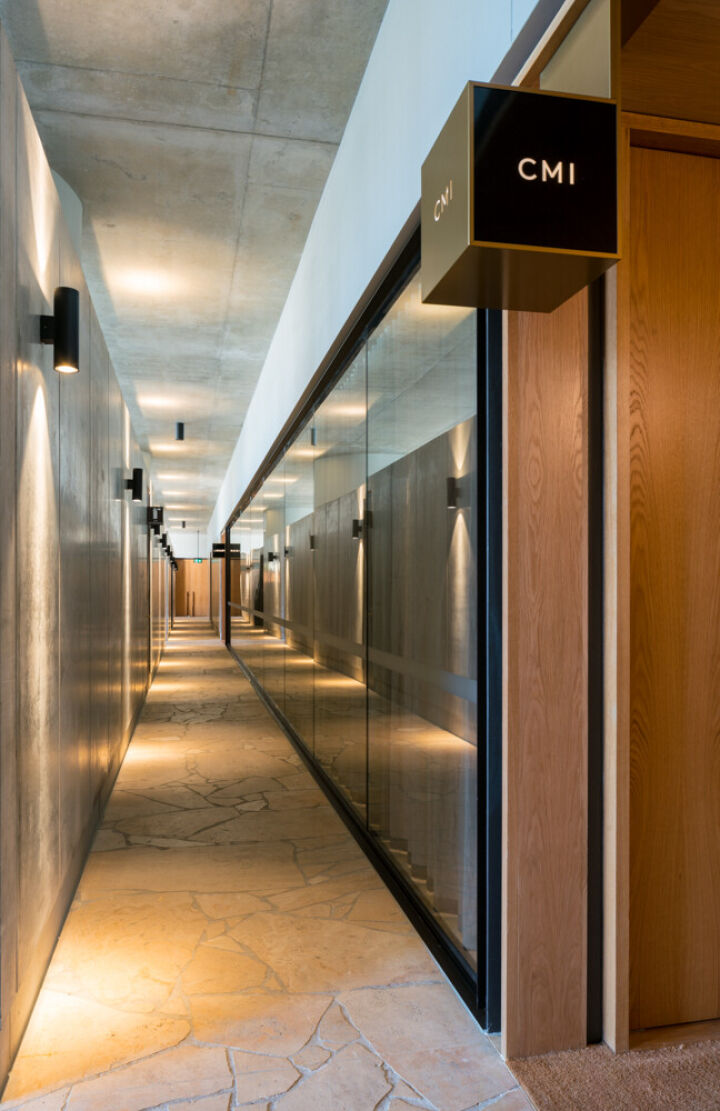 - Acoustically lined arched soffits in all four function rooms, which also comprise timber battens. The rooms have fully operable walls which can be opened to provide one large function space.