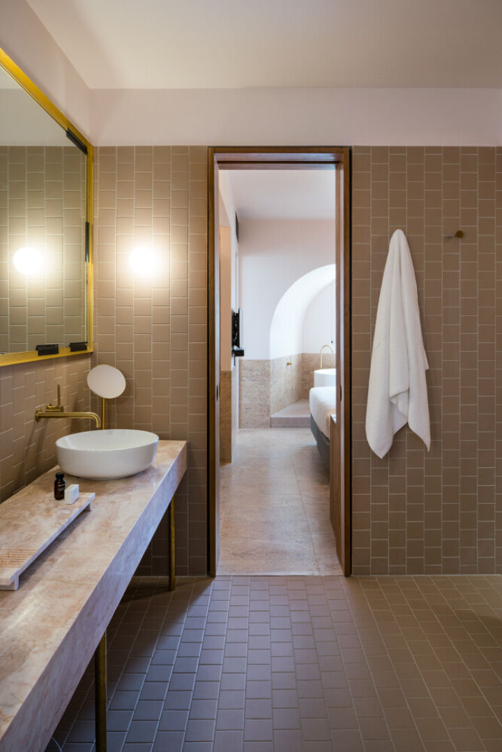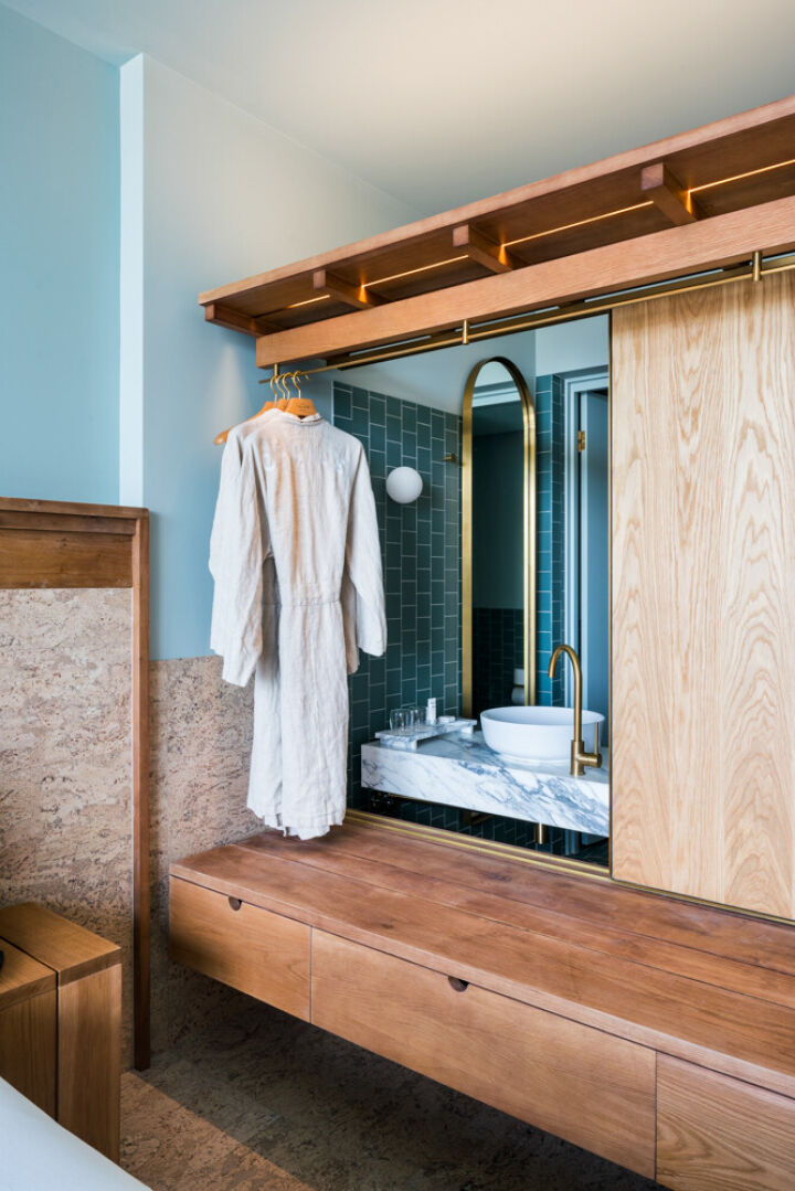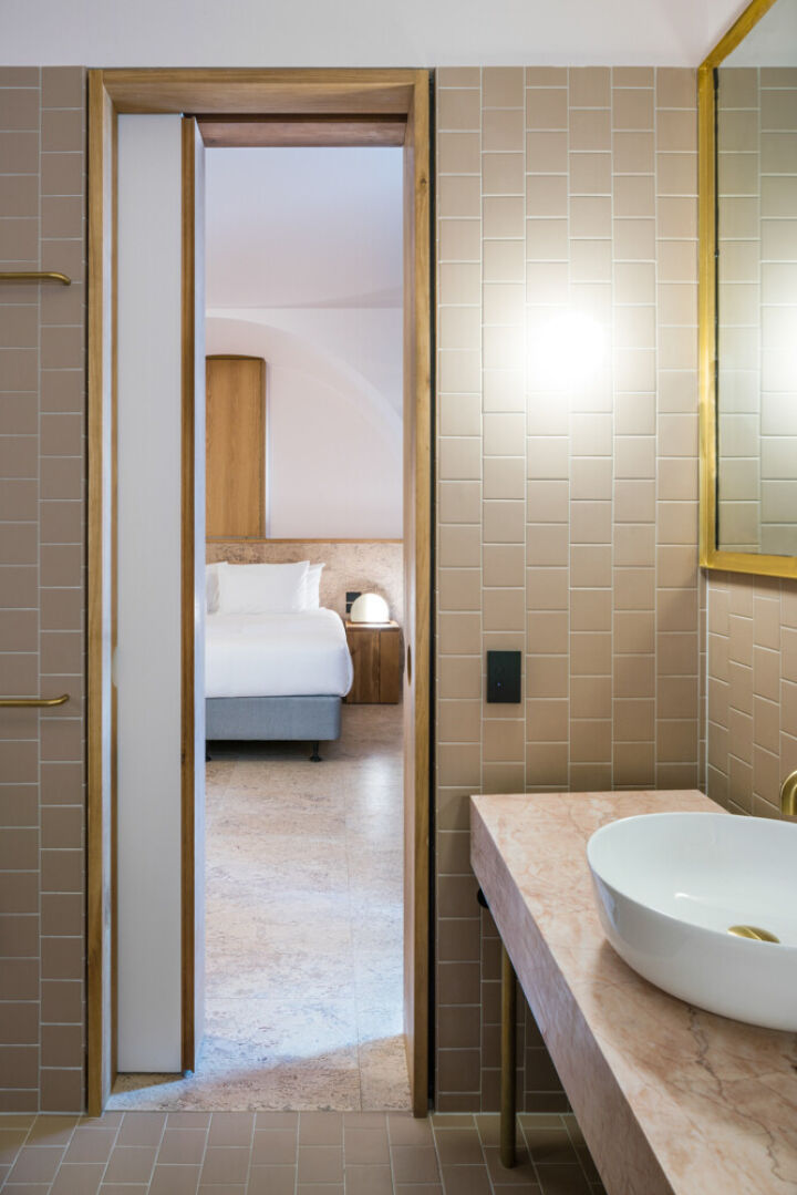 - Custom brass PVD finishes in the hotel rooms, which is used from the door handle, to the tapware, shelving, tables, mirror and robe framing and fittings throughout