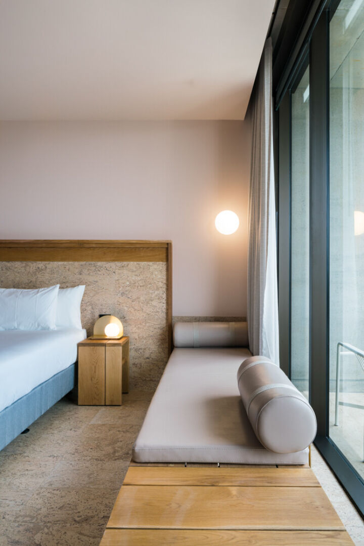 - Cork flooring laid to floors and walls to soften the hotel rooms and provide for acoustics to offset the formed concrete soffits