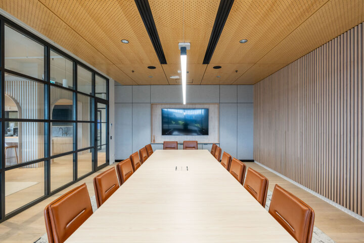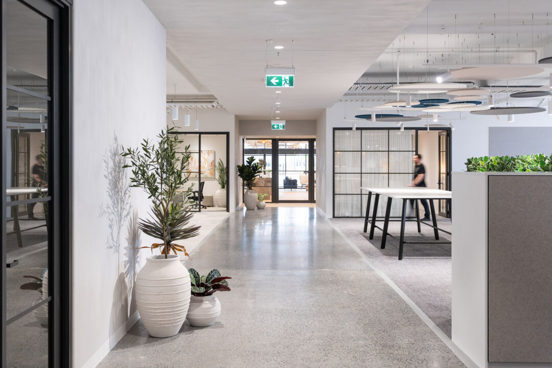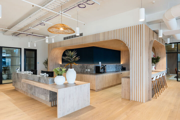 Consistent with Pillow Talk’s brand, the office fitout uses stunning high end finishes throughout. Features include a range of custom designed integrated joinery throughout as well as a range of feature walls and curved soffits, floating planters and timber batten acoustic walls. The complexity of the finishes and the coordination between various trades to enable the high quality outcome of these features had to be carefully designed and precisely executed on site.