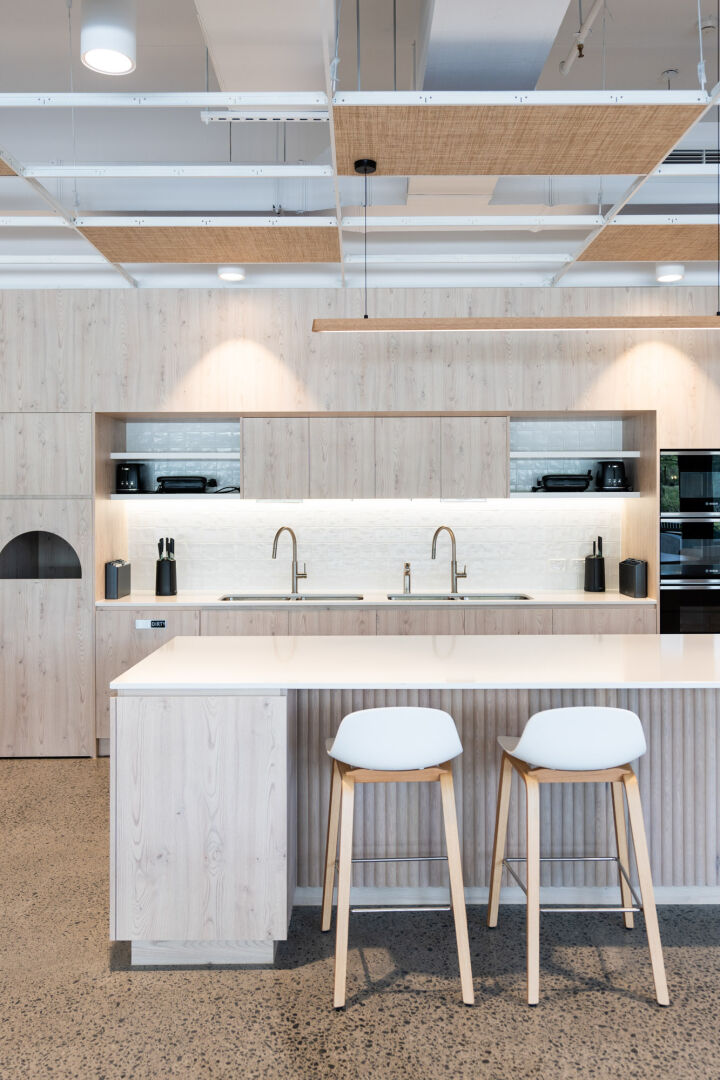 The office was designed to be a ‘home away from home’ for Pillow Talk’s team; creating a place that was inviting for their people and a space to make them feel like they were in a place they wanted to be. Integrated amenities include a gym, multiple end of trip facilities, tea points and kitchens throughout, a bar area, function space and reheat kitchen.
