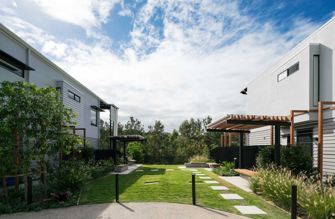 Making the most of the special qualities of the Brook setting, the design channels the traditional Queenslander home with each residence well-connected to the outdoors with interiors folding out into landscaped courtyards.