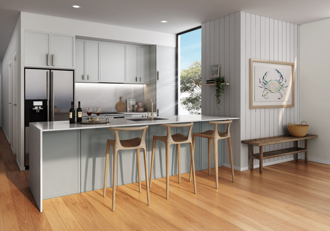 The design features a minimalistic coastal scheme throughout incorporating light and airy colours and timber floors, true to the traditional Hamptons style. With high ceilings, huge windows and large outdoor entertainment areas, this development will set a new benchmark for the area.