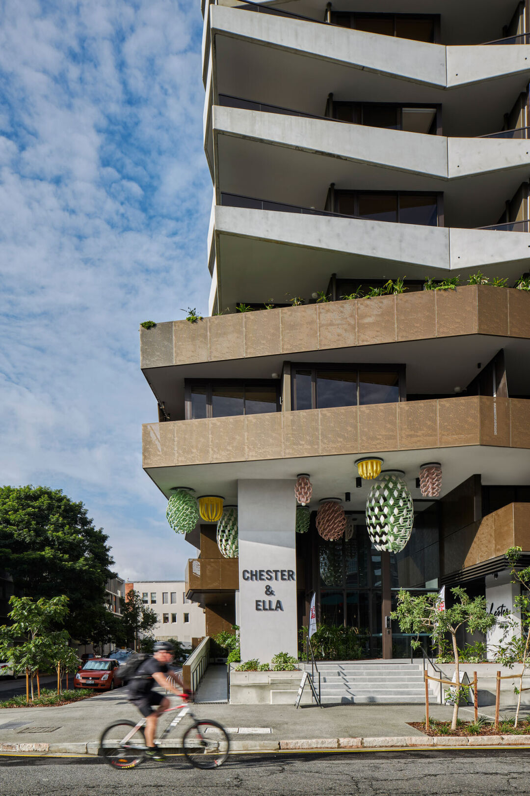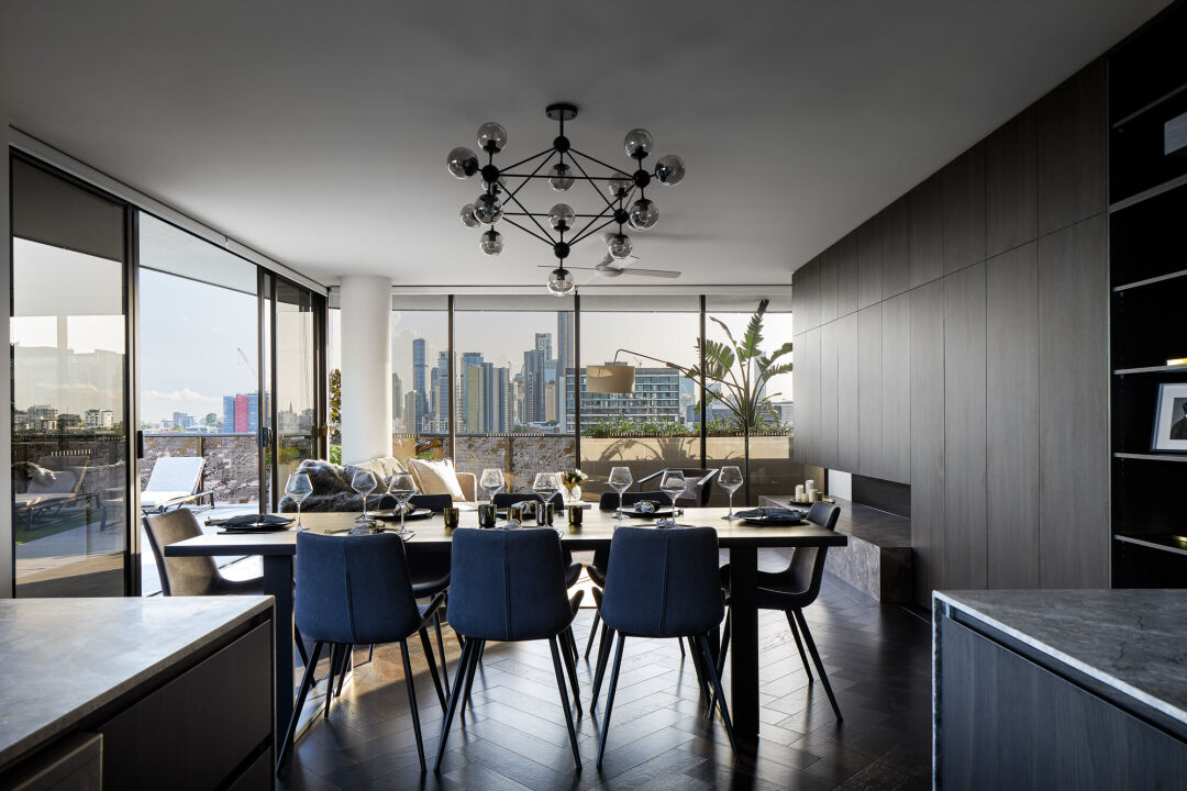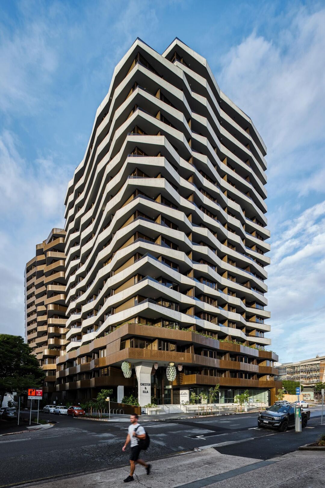 Located 2km from Brisbane's CBD, the twin luxury towers that combine to make Chester & Ella have each been designed with distinct personality. The architectural inspiration is drawn from the idea of a dance, two individuals working in sync to create a perfect synergy. The design of the towers exudes their distinct personalities – Chester is the more angular and masculine of the two (inspired by the cliffs of the Brisbane River), while Ella is all curves – representing fluidity and light.