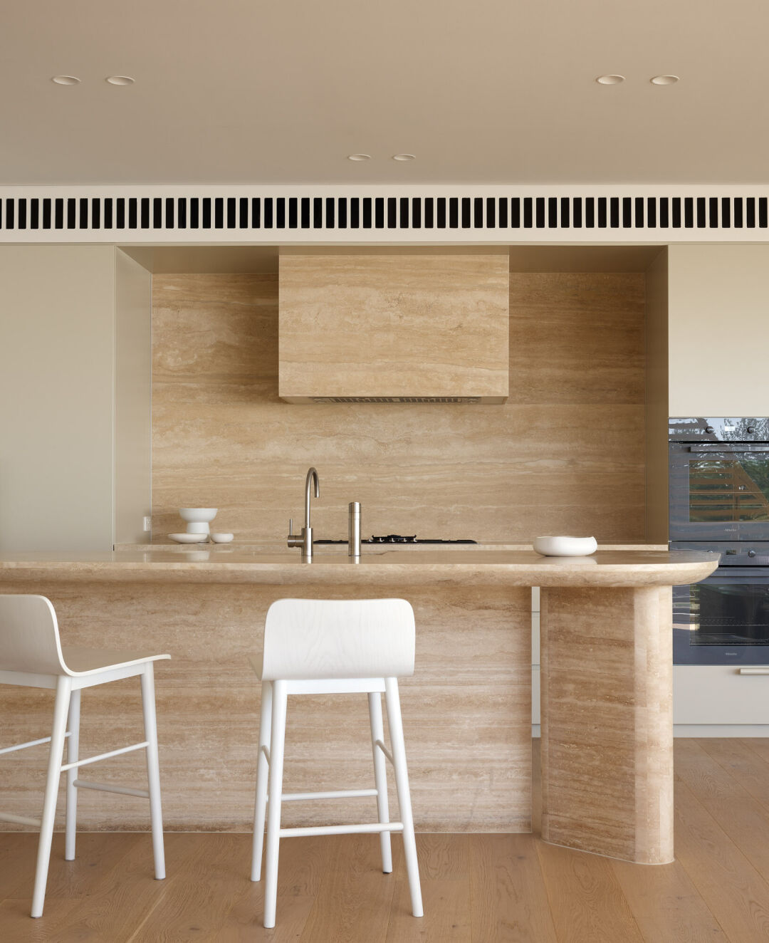 Residences comprise three ensuited bedrooms, a media room, butler’s pantry, integrated barbecue kitchen, and beach room for storage. The ground-floor gymnasium, pool, sun lounging deck and sauna promote a sense of luxury for residents and bring a private beach club in-house.