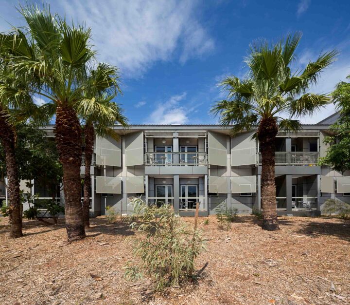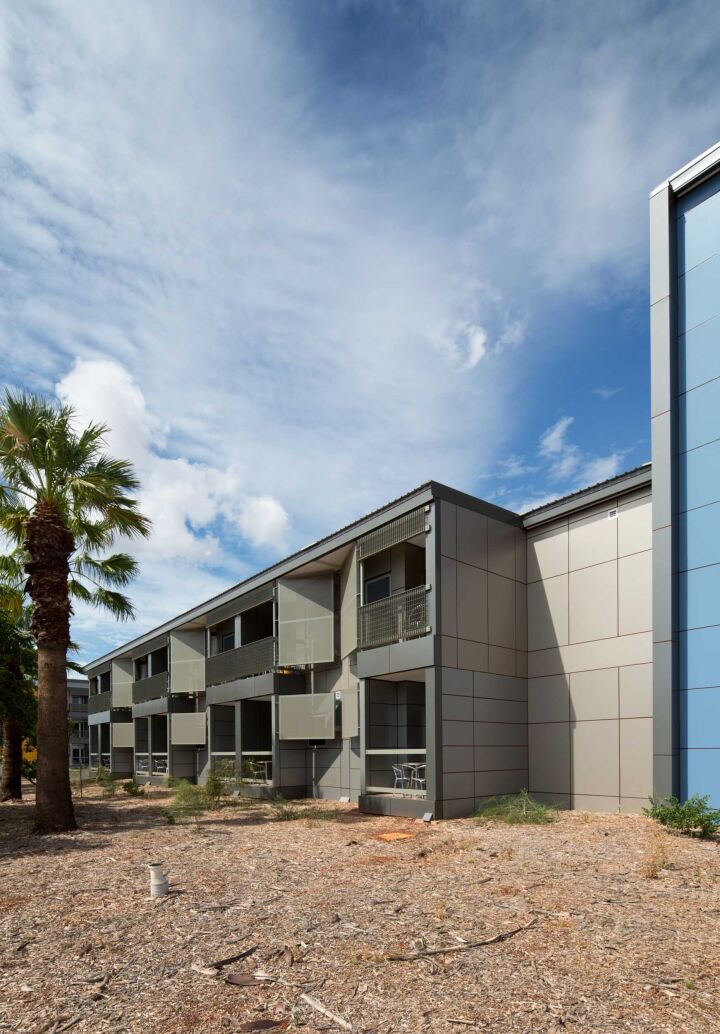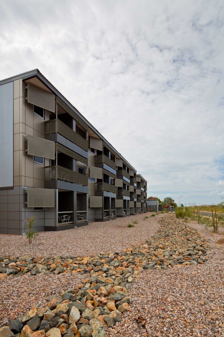 Located 20km from Karratha, Cajuput was a revolutionary accommodation strategy for port workers at Cape Lambert developed on behalf of Rio Tinto by Hutchinson Builders.