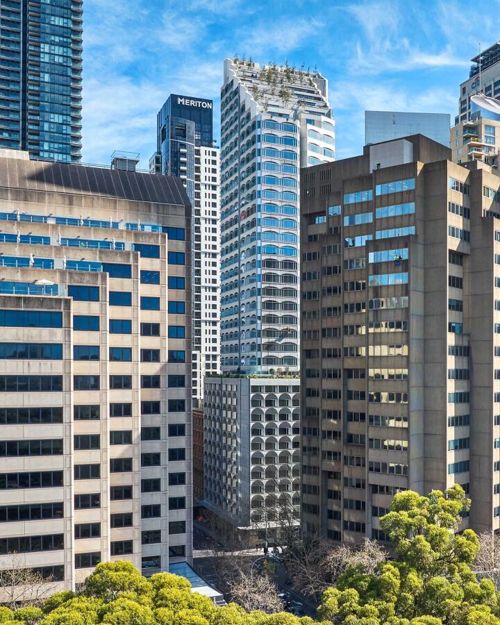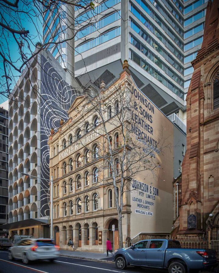 The Porter House Hotel by MGallery offers 121 luxury hotel rooms over 10 levels. The building, formerly known as Dixson & Sons Tobacco Factory, was originally constructed circa 1876 in Victorian Classic Style and has a significant presence on the Castlereagh streetscape even with its relatively sympathetic scale. This development ensures it continues to be an important piece of the urban fabric, especially with its close proximity to the adjacent St George’s Free Presbyterian Church.