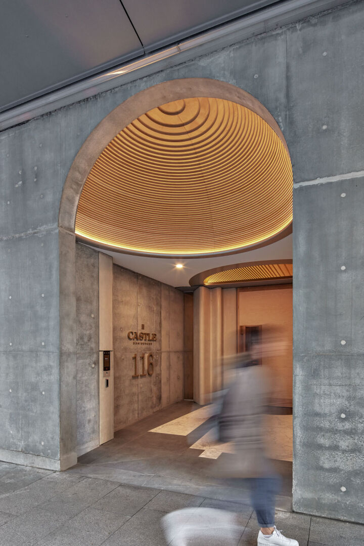 Sitting above a 6 level basement, Castle Residences is home to 131 stunning apartments. The stand out façade boasts beautifully crafted off form concrete domes on the lower floors which perfectly complement the repetitive moulded sandstone vaneer of Porter House. Beyond level 11 it cantilevers 12m off the side and continue up 27 storeys above – suspended gracefully over the Porter House building. The top of the tower offers 5 levels of stunning stepped sky gardens to its residents.