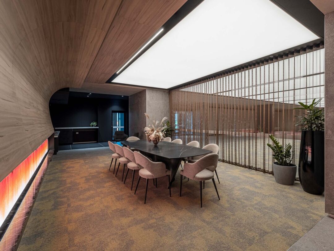 The ground floor is designed to be an interactive and unified area, featuring retail space and a significant digital wall which will showcase the work of local artists. The above six levels have a range of meeting rooms, private offices and flexible work areas that range in size from 1900 square metres to just over 3,400 square metres. 101 Moray creates an environment that encourages wellbeing amongst staff, with various health and wellness aspects built into the building such as an advanced air purification system, Circadian lighting and low VOC materials.