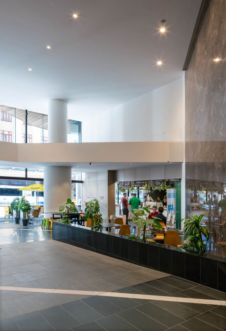 Works included the structural modelling and ultimate removal of 400m² of office tower podium slab, demolishing and remodelling of more than 900m of façade and awnings along Adelaide Street (over bus ways) and over Post Office Square (over the Central train station pedestrian corridor). All of this was undertaken whilst the building remained fully operational within one of Brisbane’s busiest pedestrian and public transport corridors.