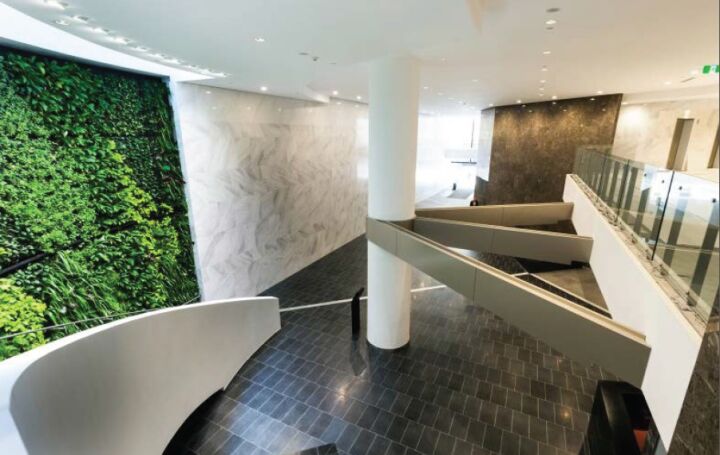 The distinctive interior green wall feature pushed the boundaries in terms of gaining maximum ‘bang for buck’ and early production of the individual planting panels allowed off-site planting to commence well before the site installation date. This allowed maximum plant growth and a bigger, fuller stock at completion with no additional costs to the Client.