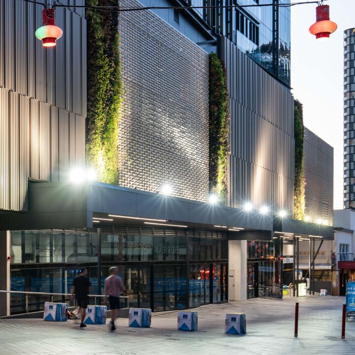 To utilise the preexisting structure a refurbishment component addressed six podium levels of carparking, enhancing them for use by tenants and the public. A new half level of parking was also built to offset the spaces lost to the building’s new lift core and columns. The carpark’s façade received a modern update with the addition of distinctive screens and treatments to conceal it from the Chinatown Mall precinct.