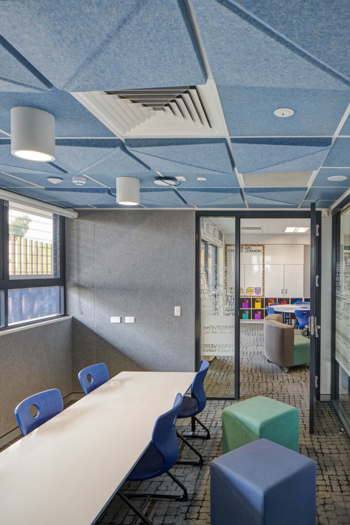 The upgrade involved the construction of 10 new permanent teaching spaces across a three level ‘homebase’ facility, accommodating an additional 200 students. The scope of works included the demolition of an existing amenities block and construction of a stepped brick feature face external façade with a powder coated aluminium screen feature.