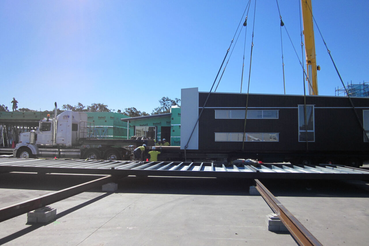 The building would first be used for the sales at their Carina site and then later moved to their Redcliffe project. We designed and built this high quality building in our modular yard at Yatala. It was transported to site and installed with surrounding beautiful landscaping to make it feel as though it was in-situ.