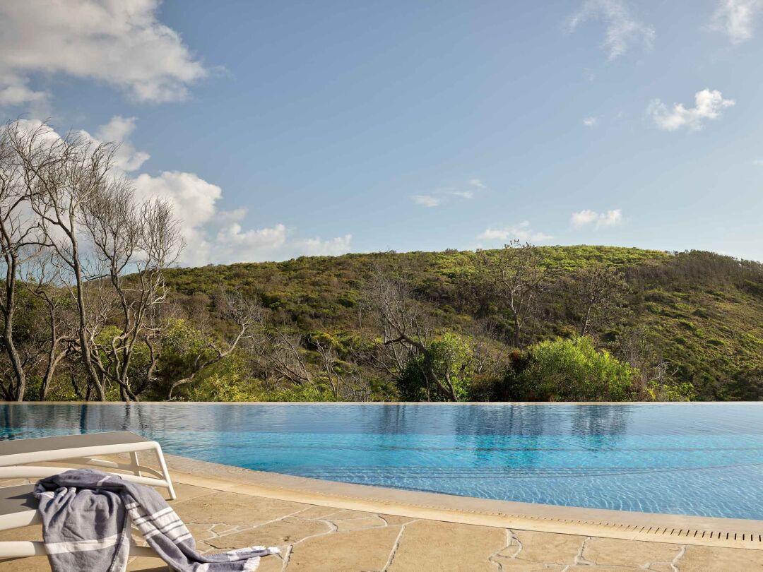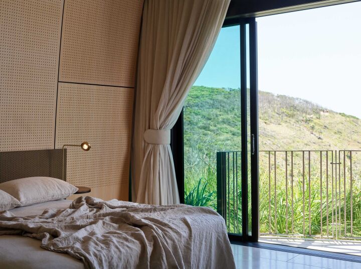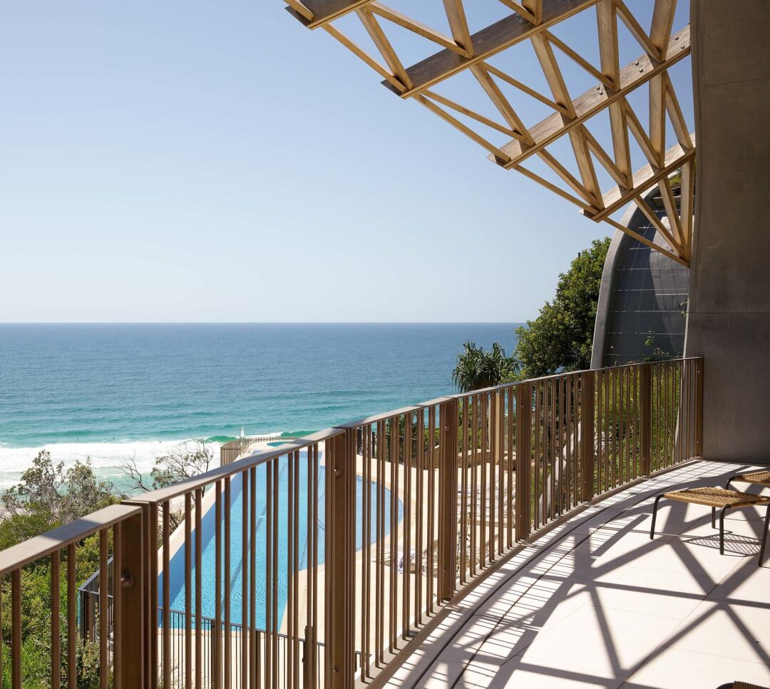 Domic is a luxury six bedroom, six bathroom private residence constructed over three levels on a sloping block adjacent to Noosa National Park and overlooking Sunshine Beach.