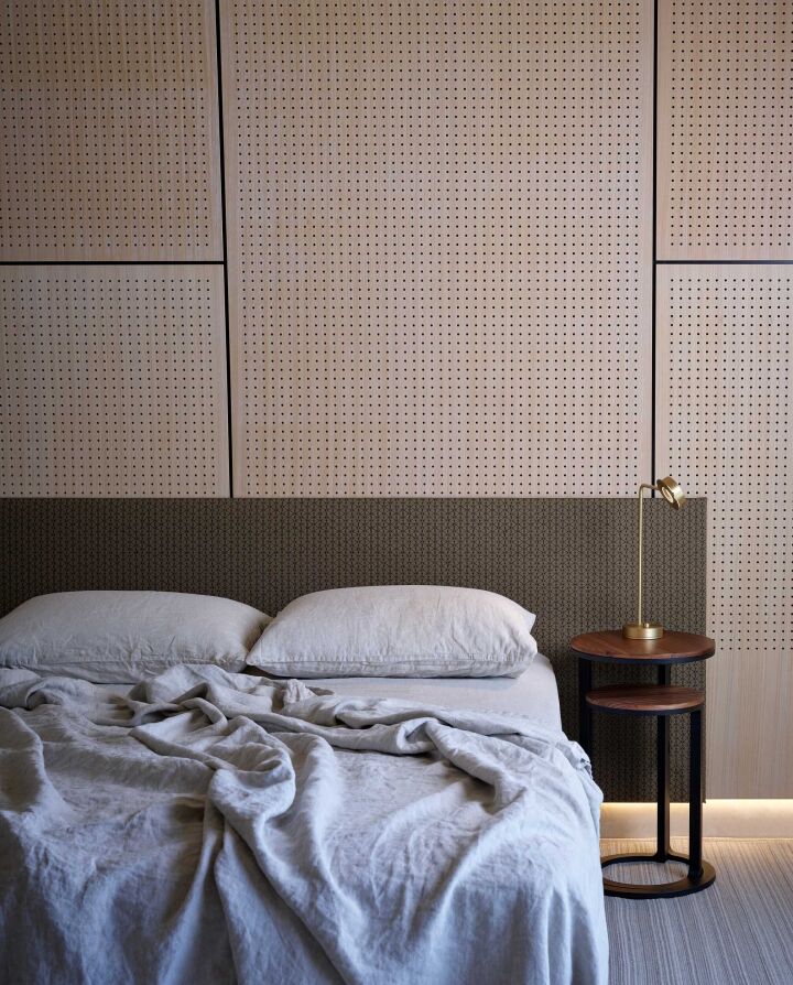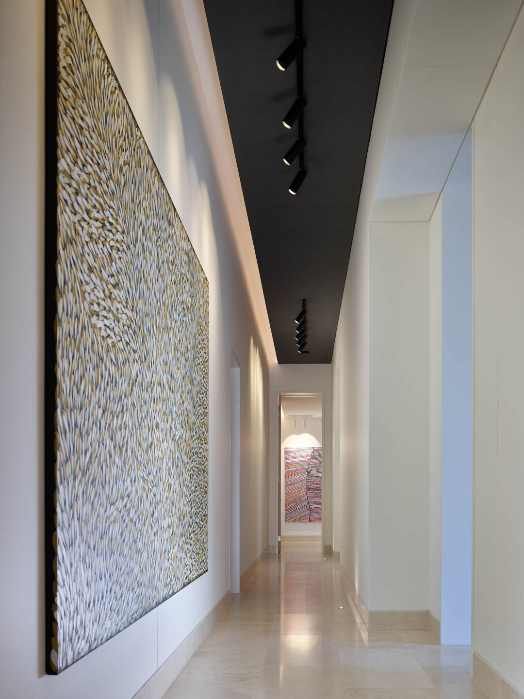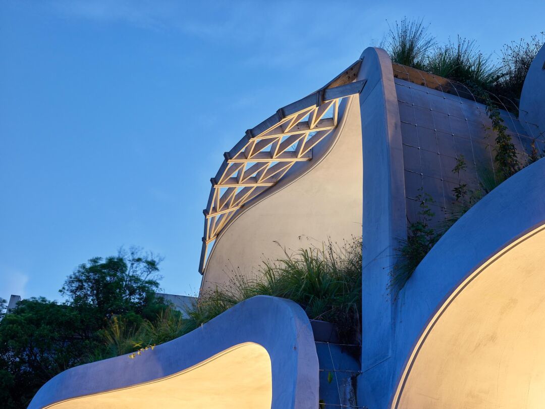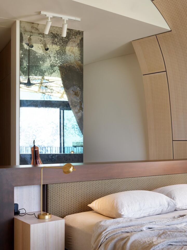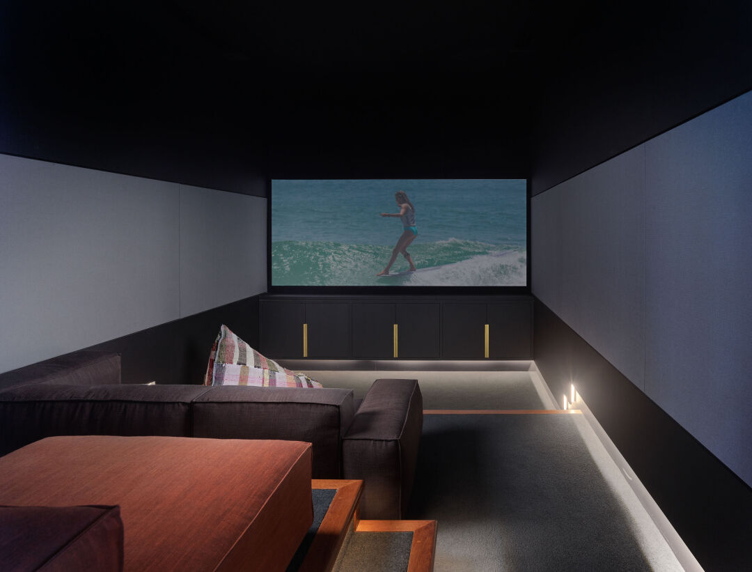 Externally, the curved roofing is covered in native landscaping, fusing the structure with the surrounding bushland and dune system. Internally, the uniquely vaulted ceilings are lined with acoustic plywood feature panels.
