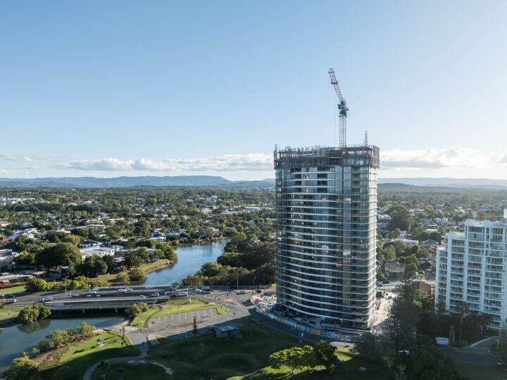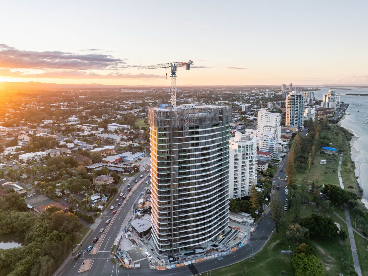 Eve Residences is a remarkable residential project built by Hutchies. Located at 180 Marine Parade, Labrador, this 25 story tower is inspired by the sand patterns found among the swirling tidal flats of the adjacent Broadwater, the tower’s fluid, curvilinear form is a monument to its coastal setting.