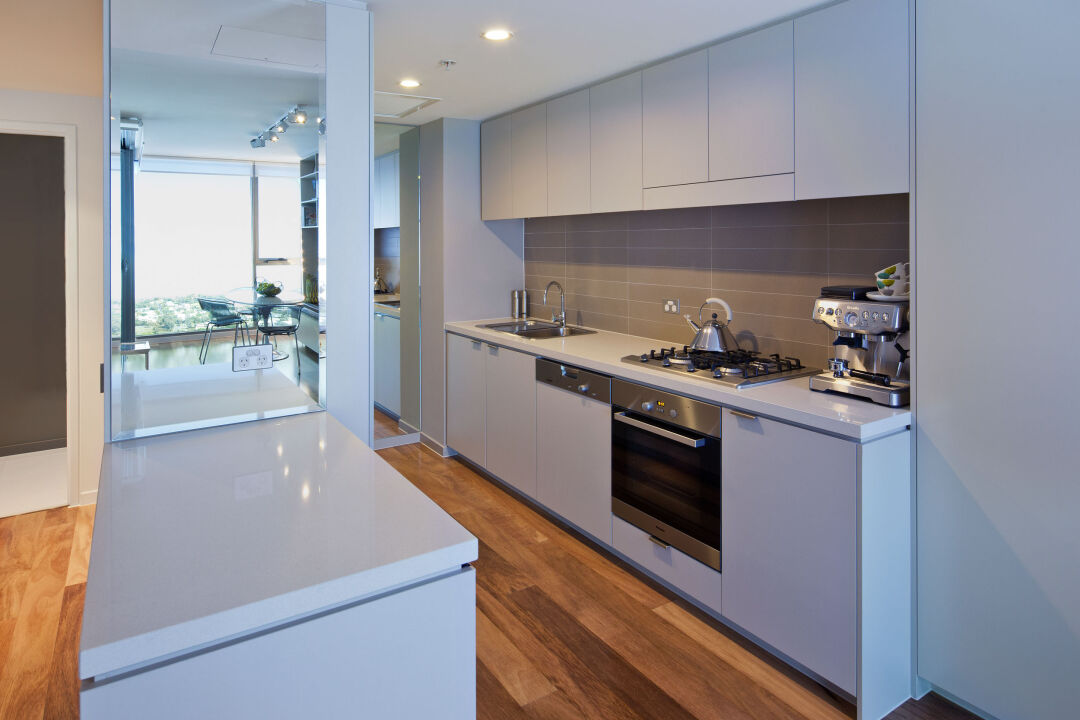 We immediately identified the benefits modular construction would provide the project, especially given Mirvac intended to relocate the building up to 5 times around the precinct as stages finished. The design of the suite was to replicate the look and feel of an authentic, high quality Mirvac product.